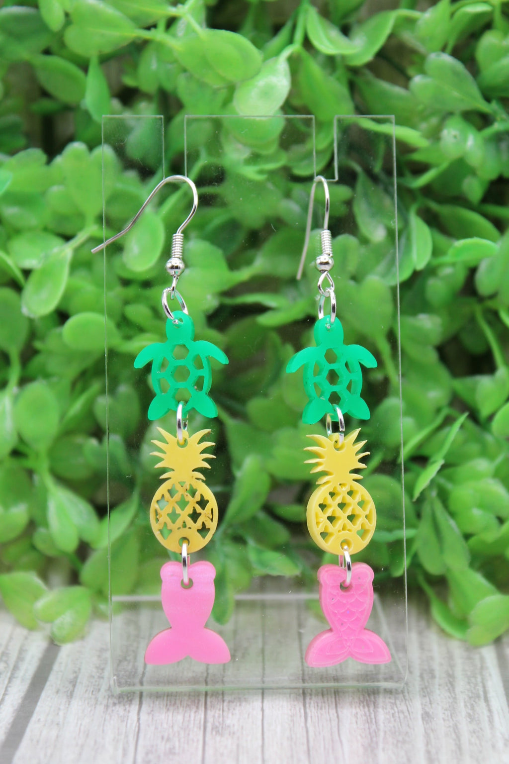 Turtle Pineapple Mermaid Tail Summer Fun Trio Dangle Earrings