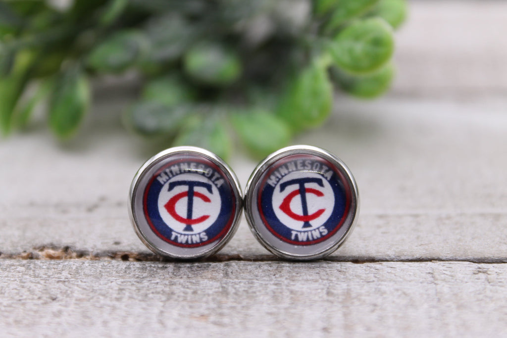 Twins Baseball || 12mm Glass Stud Earrings || Hypoallergenic