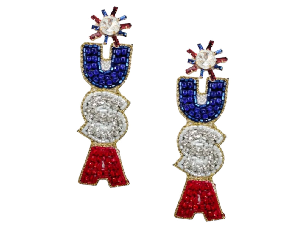 USA Embroidered Cable Textured Knit Cuffed Sleeve Color Block Tee