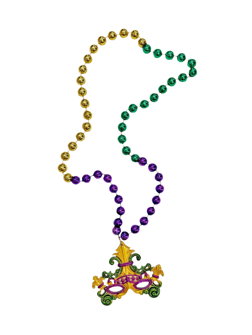 Venetian Mask with Fleur De Lis Medallion on a Purple Green Gold Specialty Beads