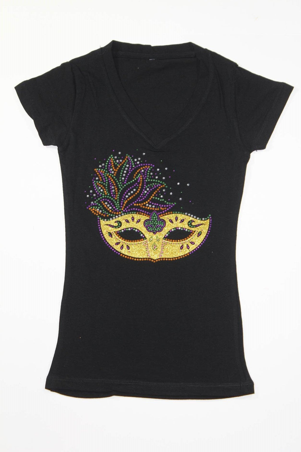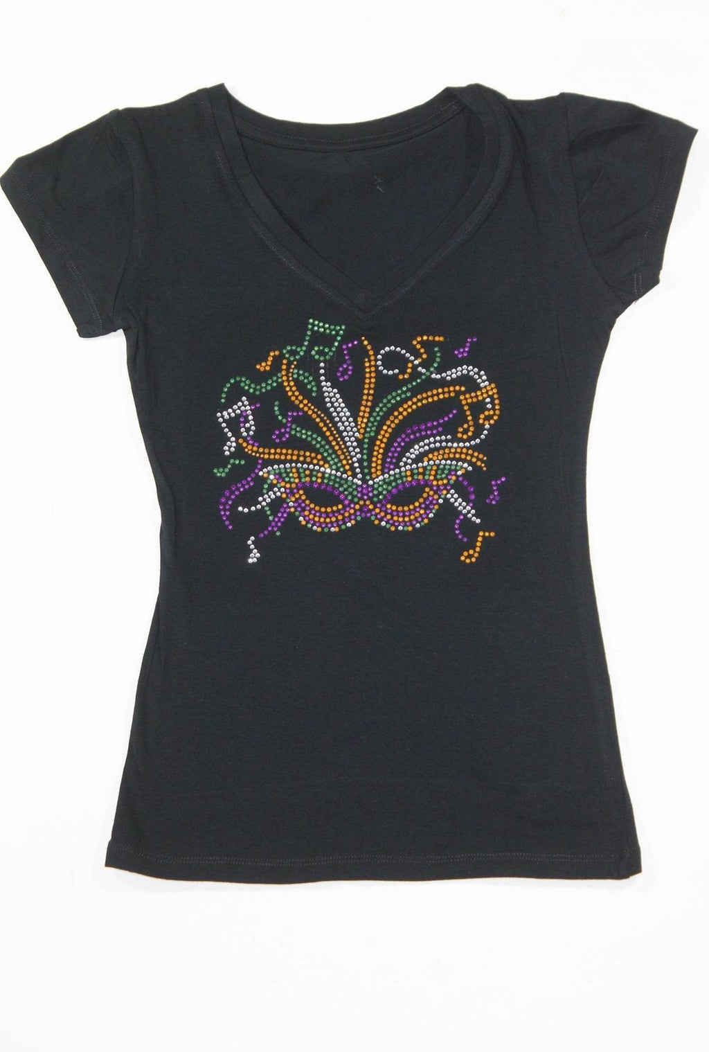 Venetian Mask Side Feather Purple Glitter (Short Sleeve or Long Sleeve)
