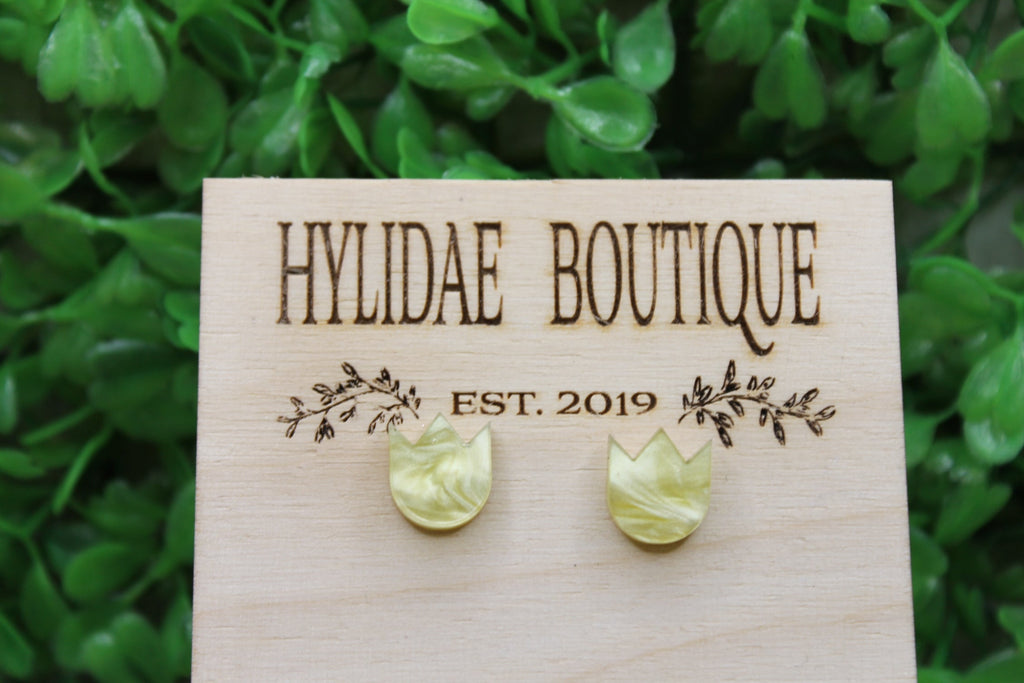 Yellow Shimmer Tulip • Stud Earrings