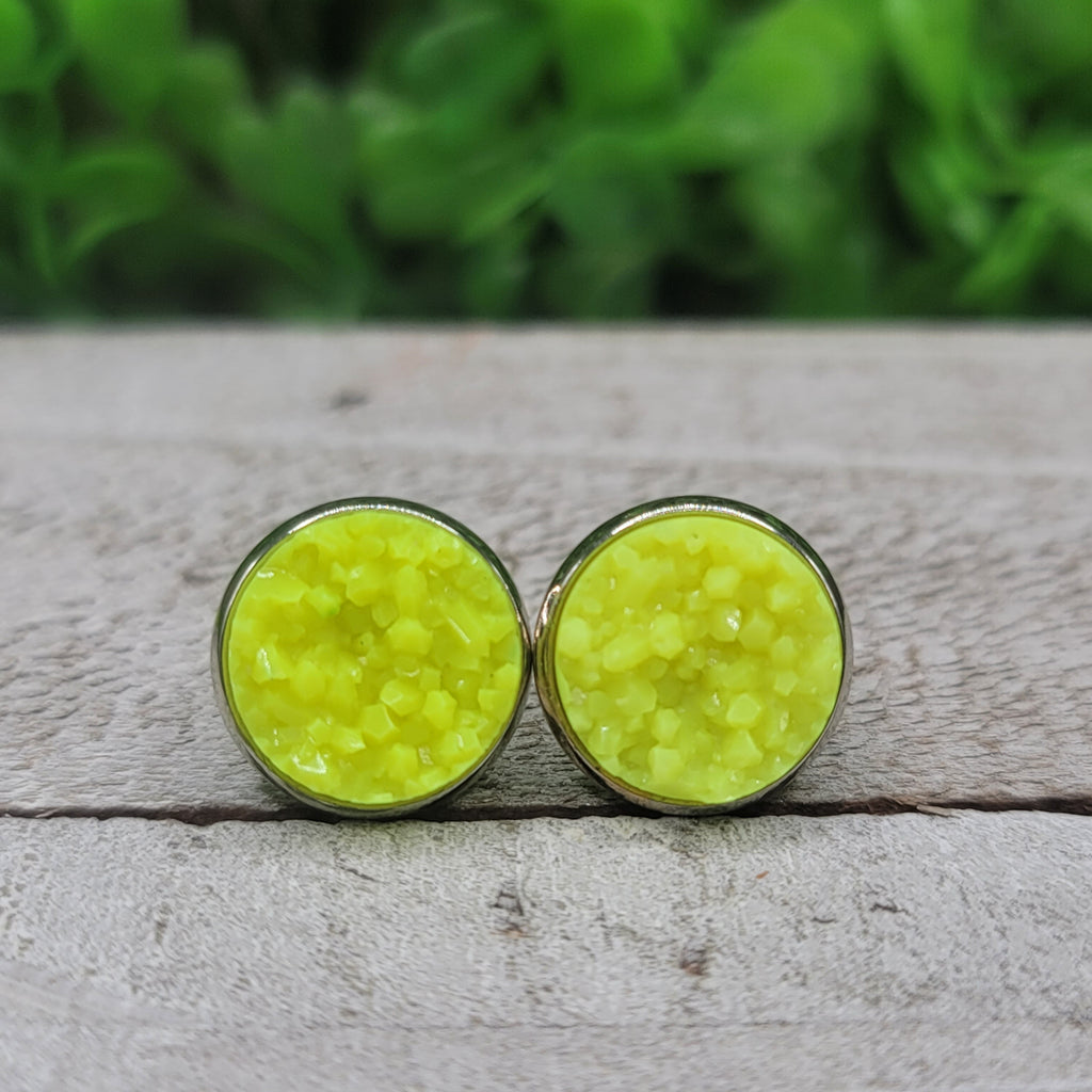 Yellow Neon Druzy Stud Earrings