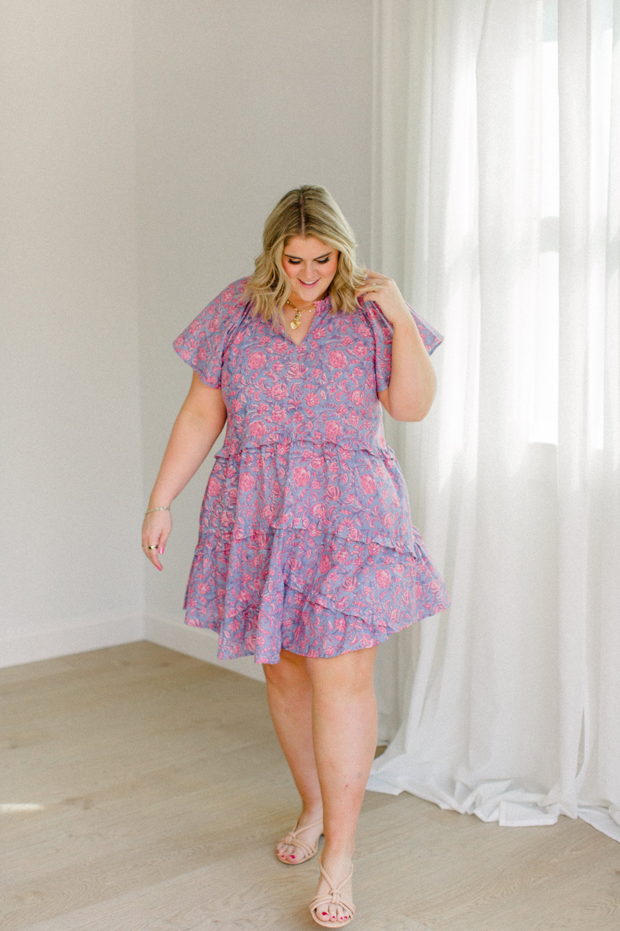 The Kathleen Dress is the throw-on-and-go-dress you need for this spring and summer. It features a ruffle collar, flattering curved ruffles on the skirt, flowy short sleeves, and an a-line style shape that is flirty and fun while still being extremely comfortable. It features functional pockets and is unlined. The Kathleen will be your favorite dress for hot summer days and pair beautifully with a jacket for cooler days. This dress is bump friendly.