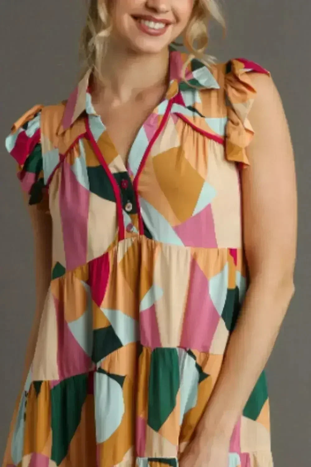 Umgee Full Size Button Detail Ruffle Sleeve Mini Dress Plus Size
