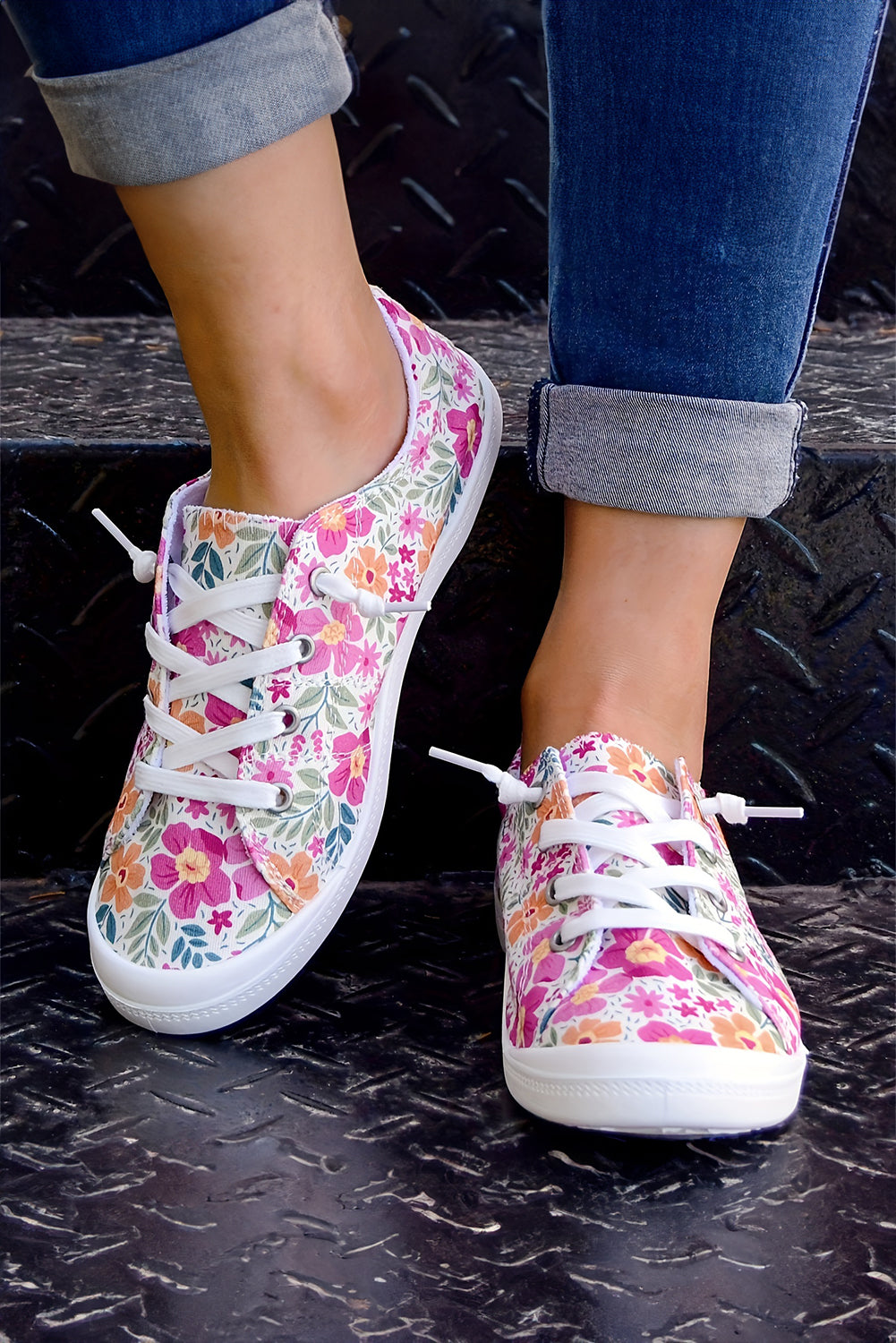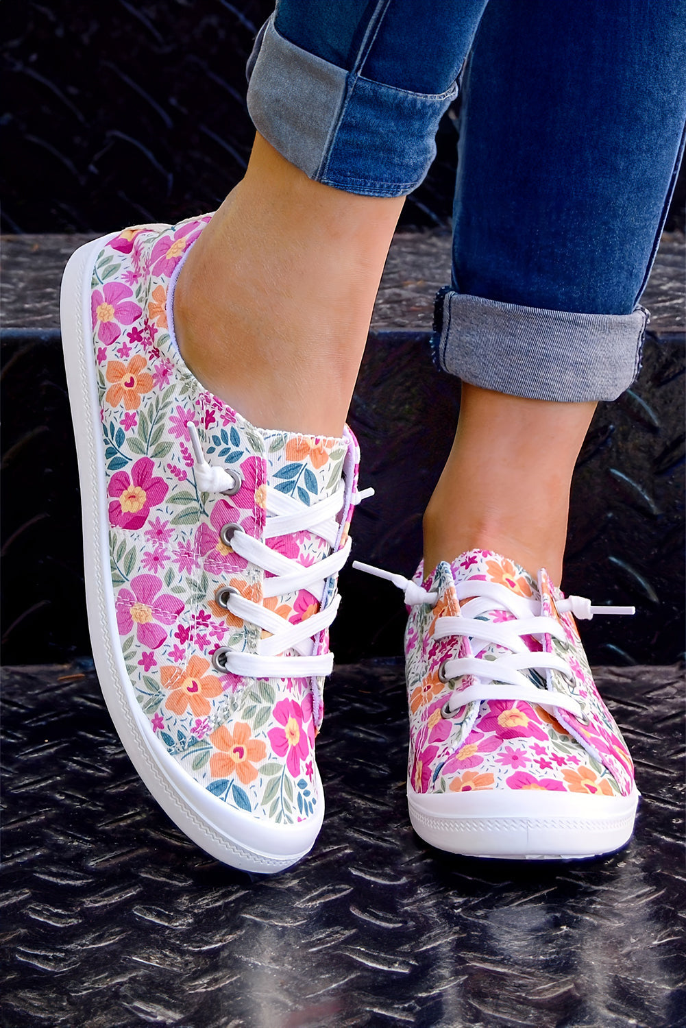 Bring a playful vibe to your outfit with these canvas shoes featuring a vibrant floral pattern. The slip-on style makes them perfect for quick, effortless wear, while the lace-up accents offer a cute, customizable fit. Crafted from sturdy canvas, they’re built to keep up with your adventures.