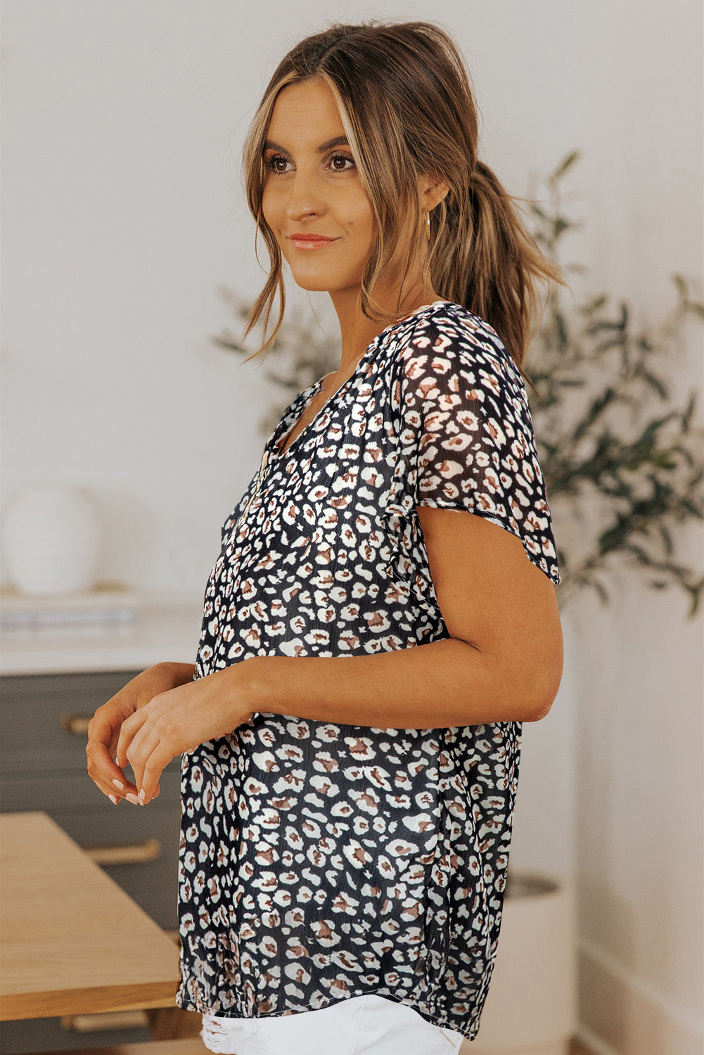 Ellie Flutter Sleeve V Neck Floral Blouse