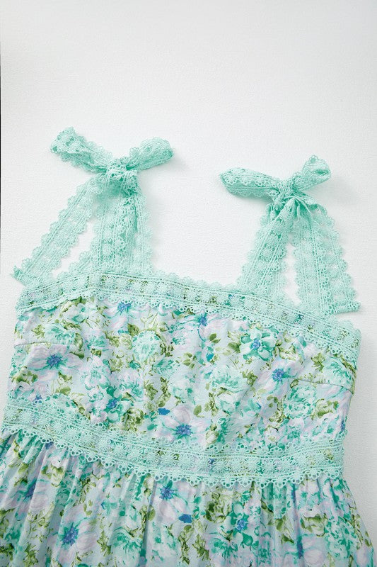 Floral Lace Tied-Strap Empire Waist Maxi Dress