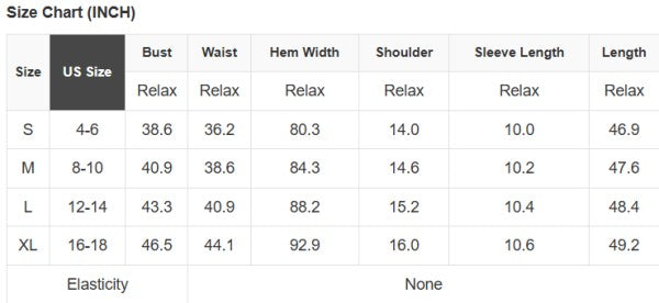 See size chart for approximate measurements