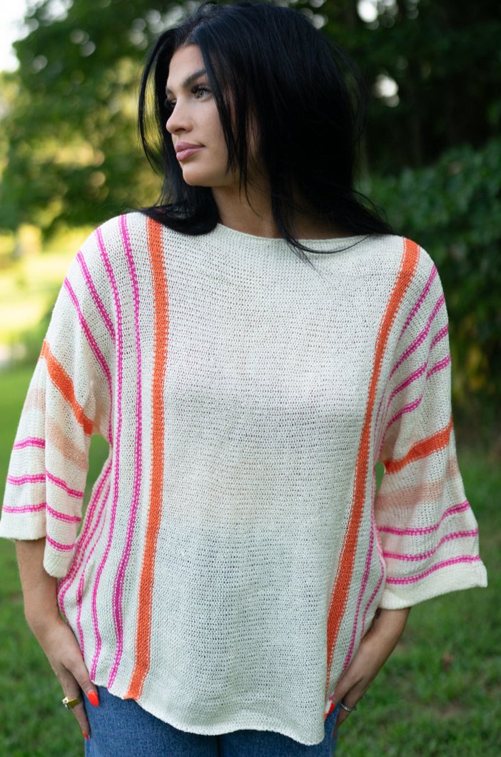 Get lost in style with this ultra-chic striped sweater. Its wide sleeves add a trendy twist to a timeless design, while the crew neck offers a simple yet elegant neckline. The knitted construction provides both warmth and comfort for all-day wear