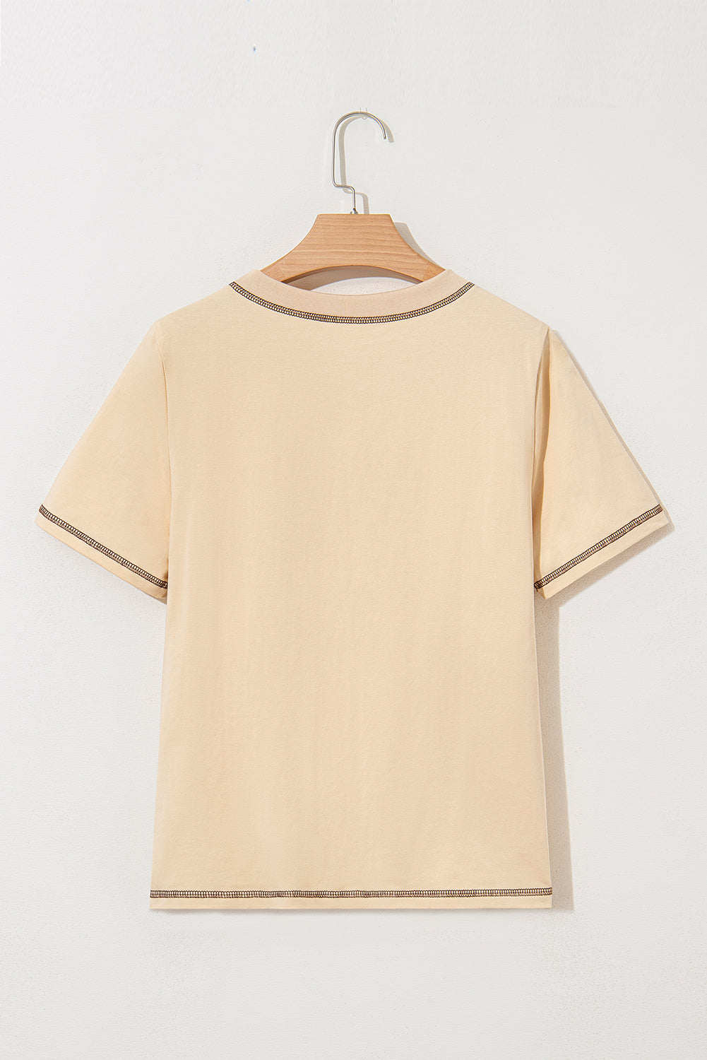 Amp up your style with this versatile and chic tee featuring a horseshoe embroidered patch pocket for added flair. The contrast stitching adds a trendy touch, making this the perfect choice for everyday wear or vacation.