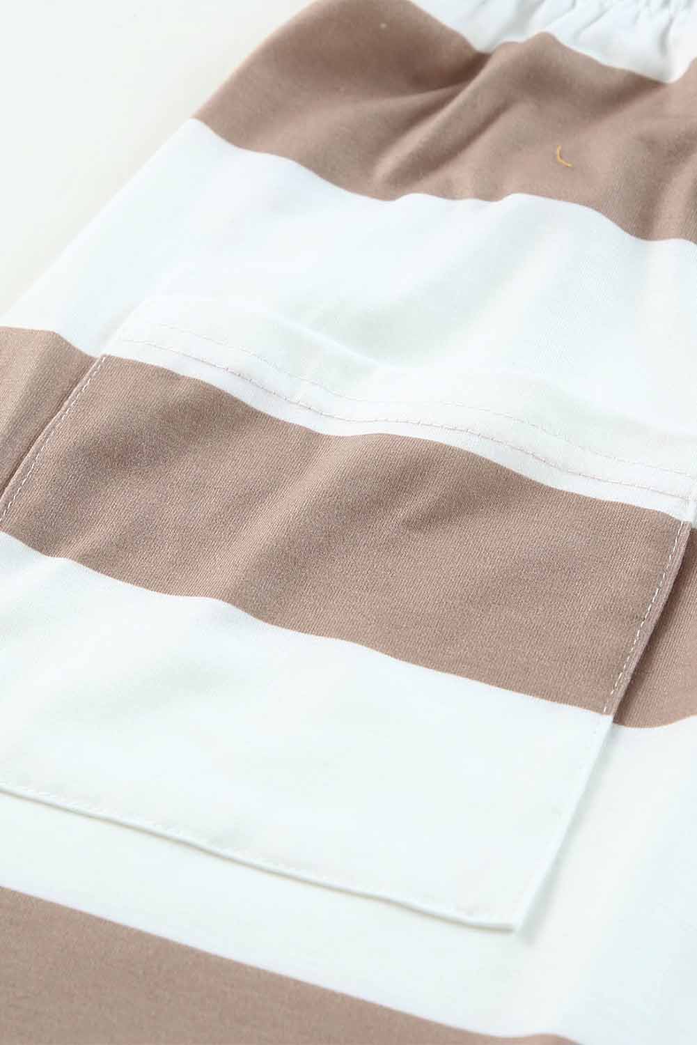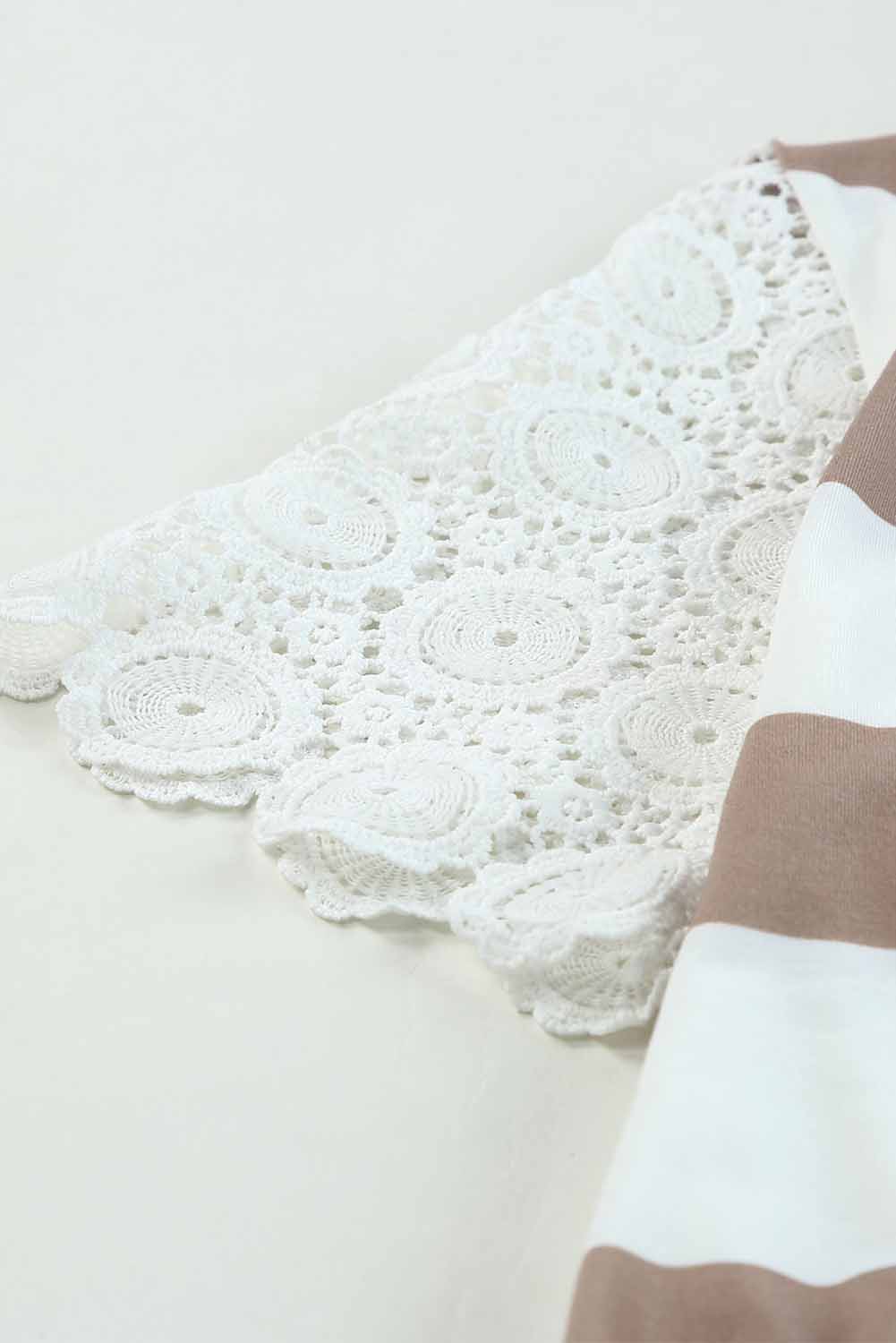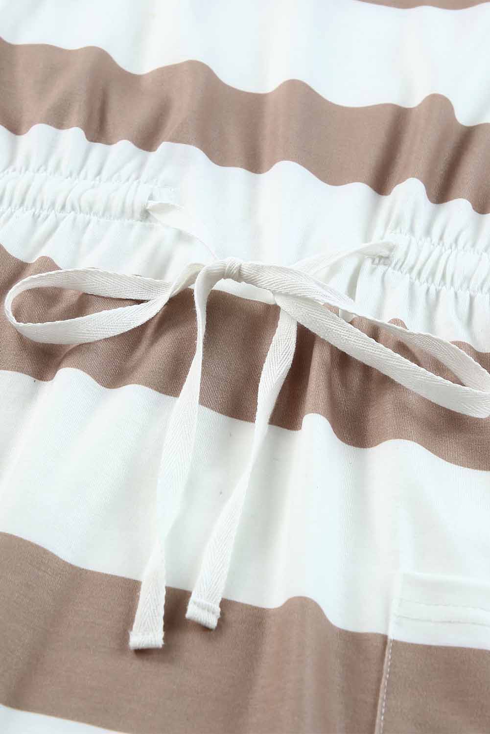 • Add a touch of style to your wardrobe with this chic short-sleeve dress. It boasts a flattering V-neck, unique striped design, and trendy drawstring feature. Complete with delicate lace crochet and practical pockets, this dress is perfect for showing off your feminine charm and carrying small items.