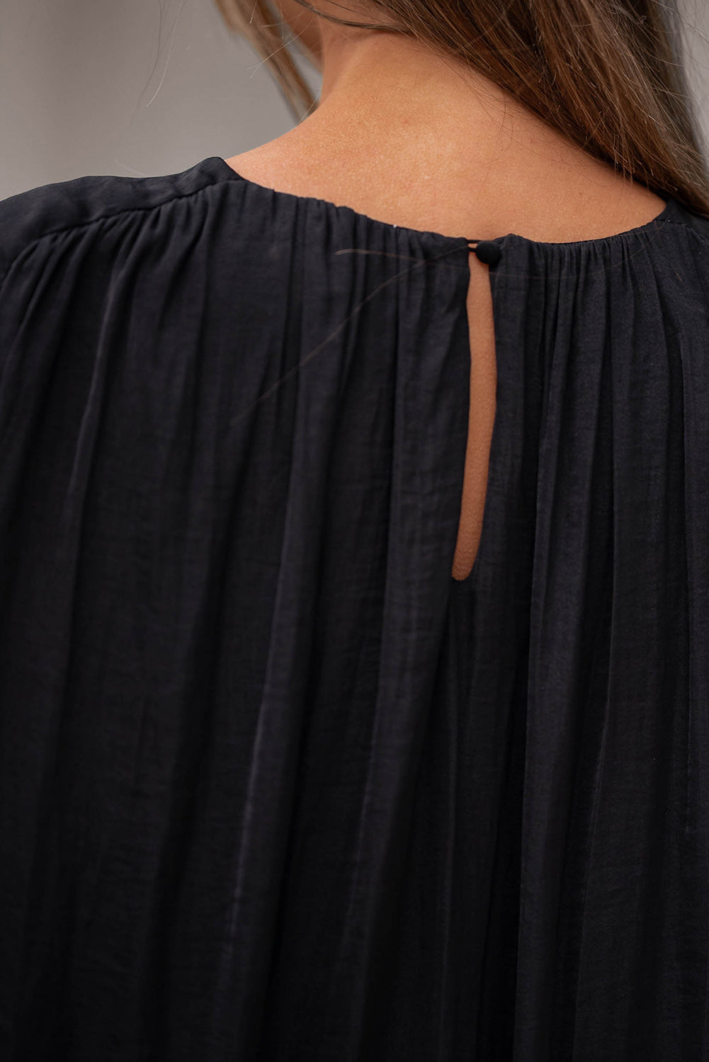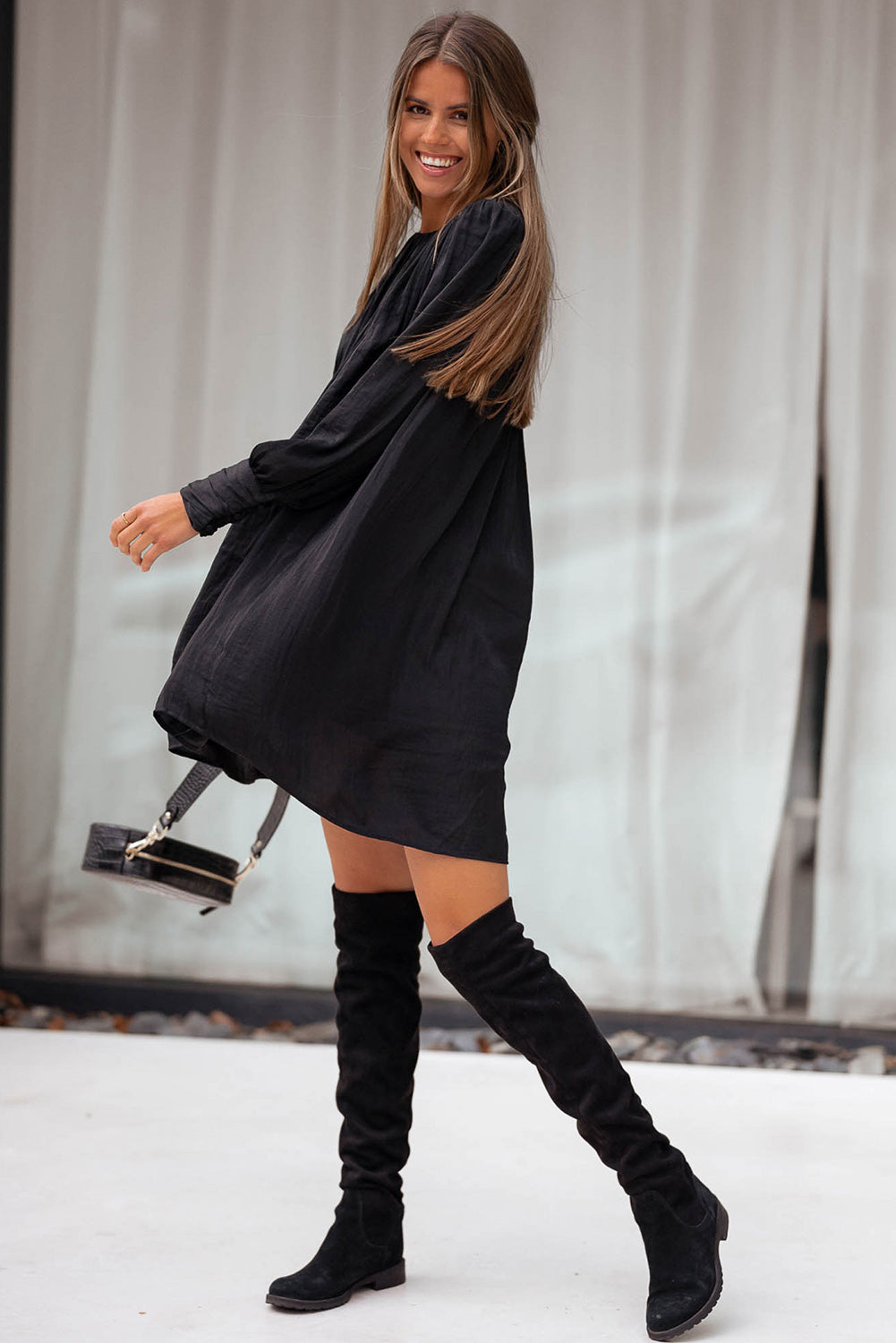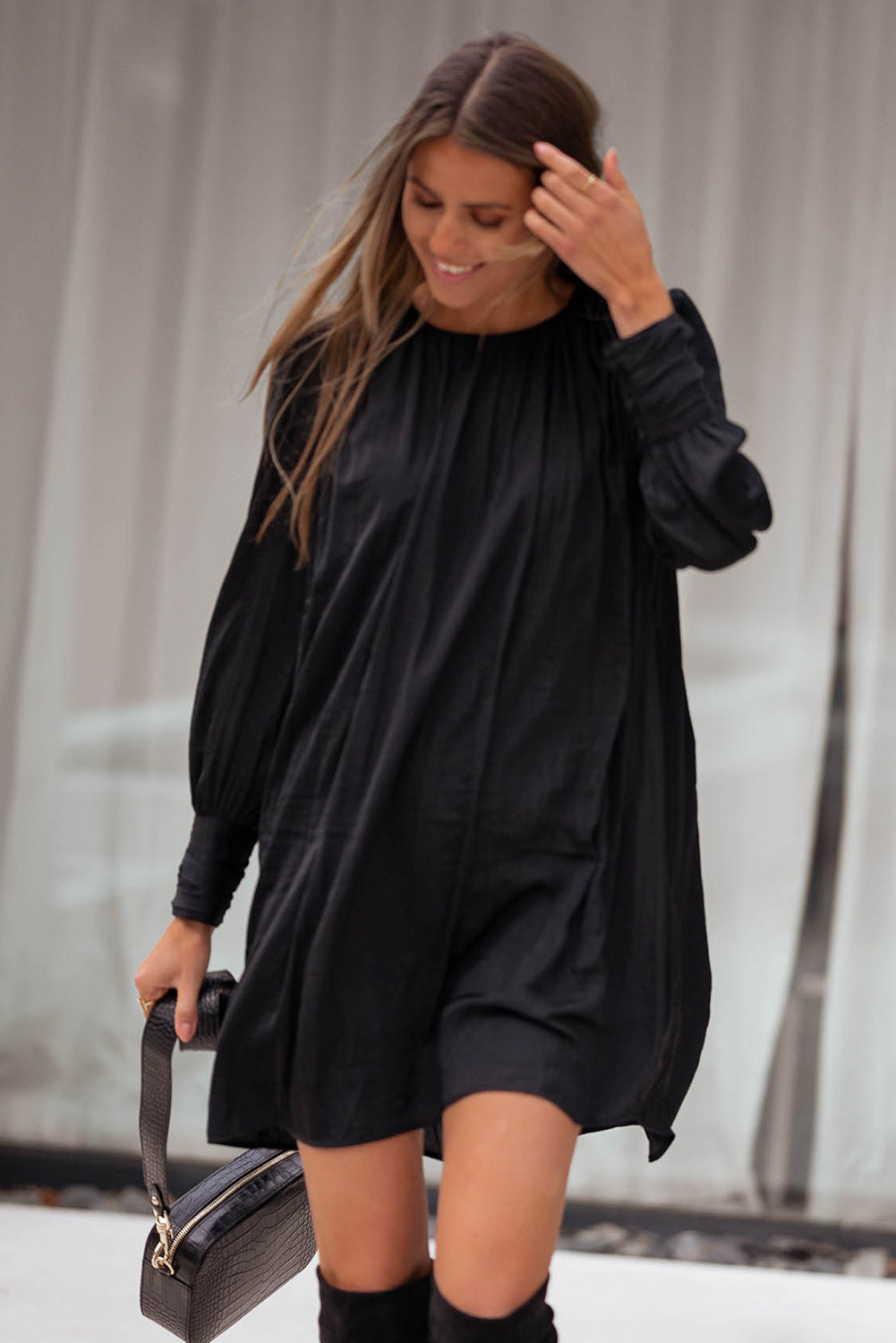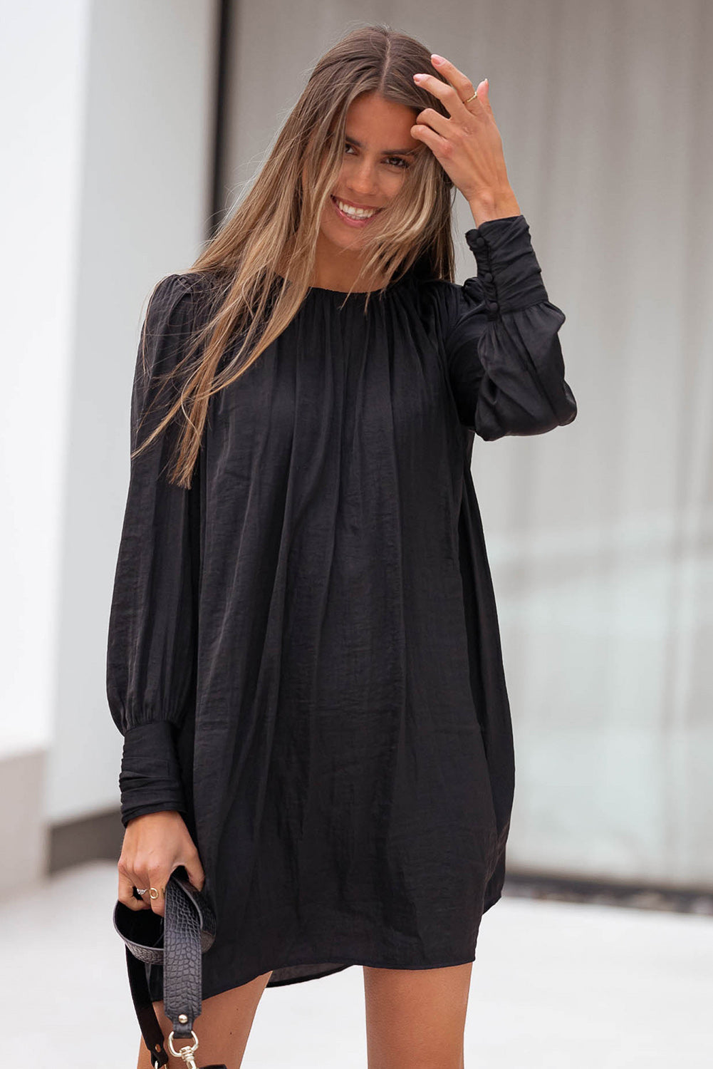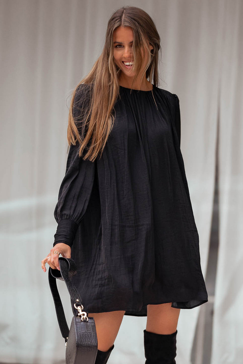 Rowan Solid Bishop Sleeve Pleated Mini Dress