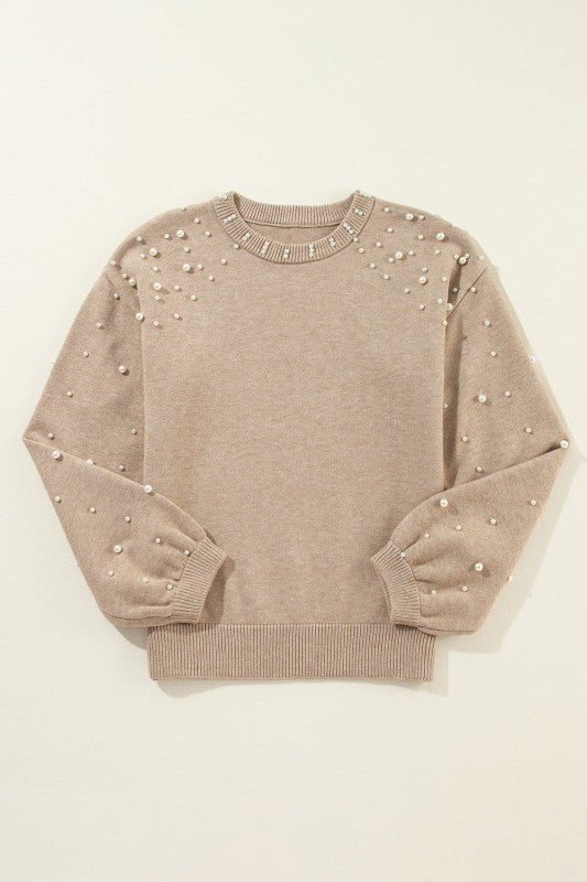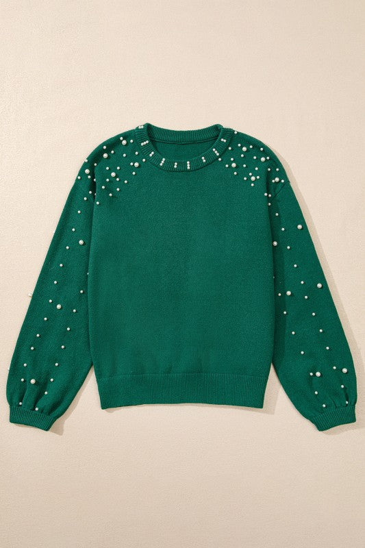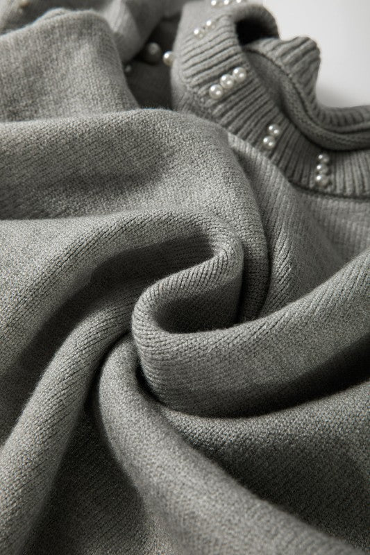 This knit sweater showcases delicate embellishments, adding refined elegance and a feminine touch. Its shoulder design offers a modern silhouette, while the classic round neck complements necklaces and collars seamlessly. Ideal for wearing alone or layering, it combines timeless style with contemporary flair. Viscose/Polyester/Poly