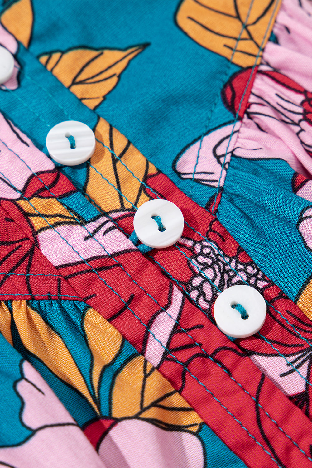 Taylor Floral Balloon Sleeve Half Buttons Blouse