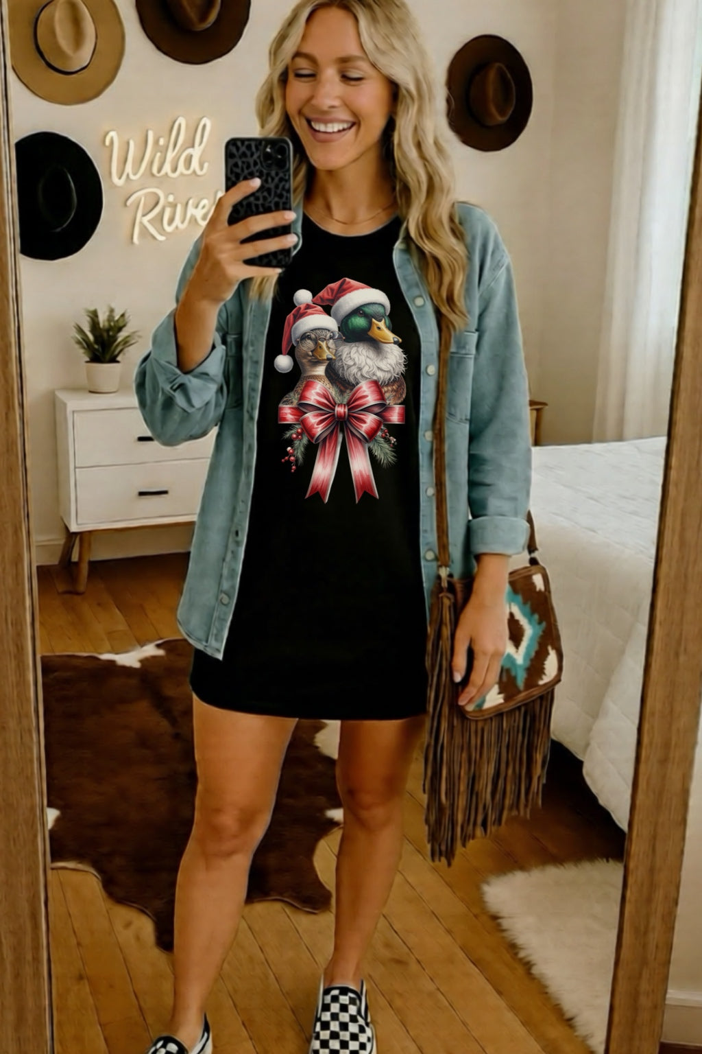 Mr. & Mrs Clause Ducks Christmas Bow Hunting Shirt – Graphic Tee, Long Sleeve & Crewneck