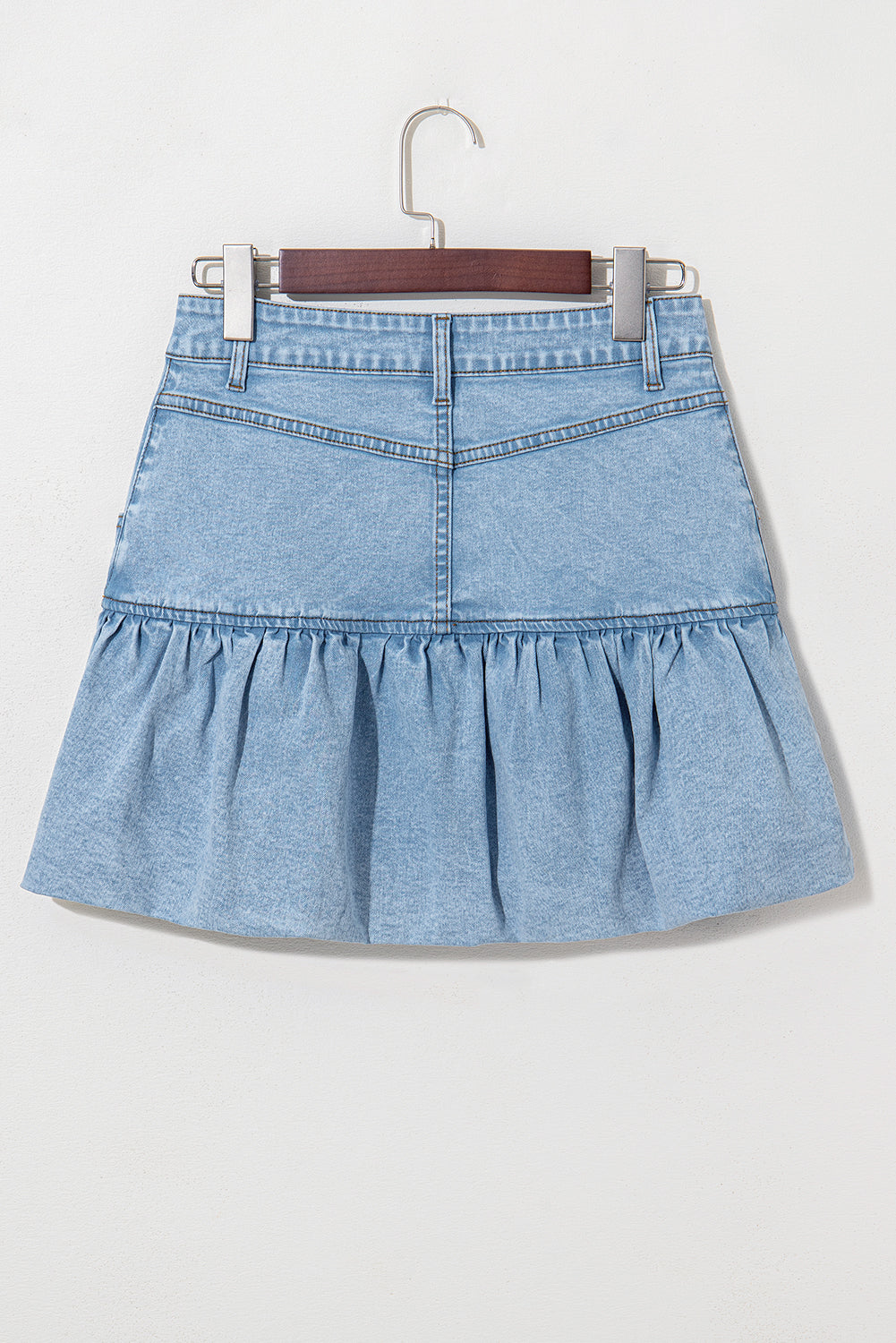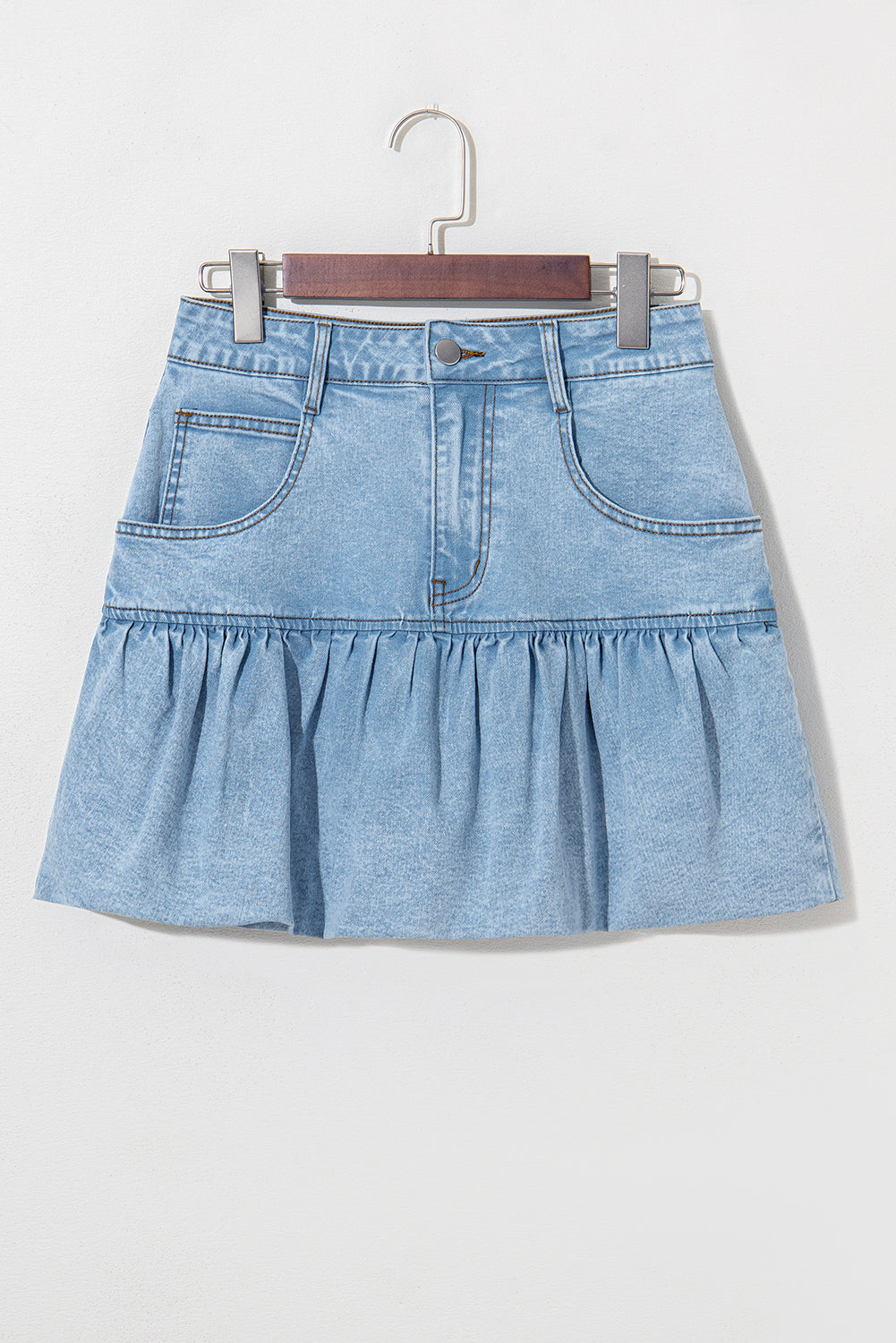 This denim skirt has a cool light wash for a timeless look, while the funky bubble hem design adds a playful touch. Made with durability in mind, this stylish mini skirt is perfect for showing off those sexy legs! (But don't worry, it's not too serious.)