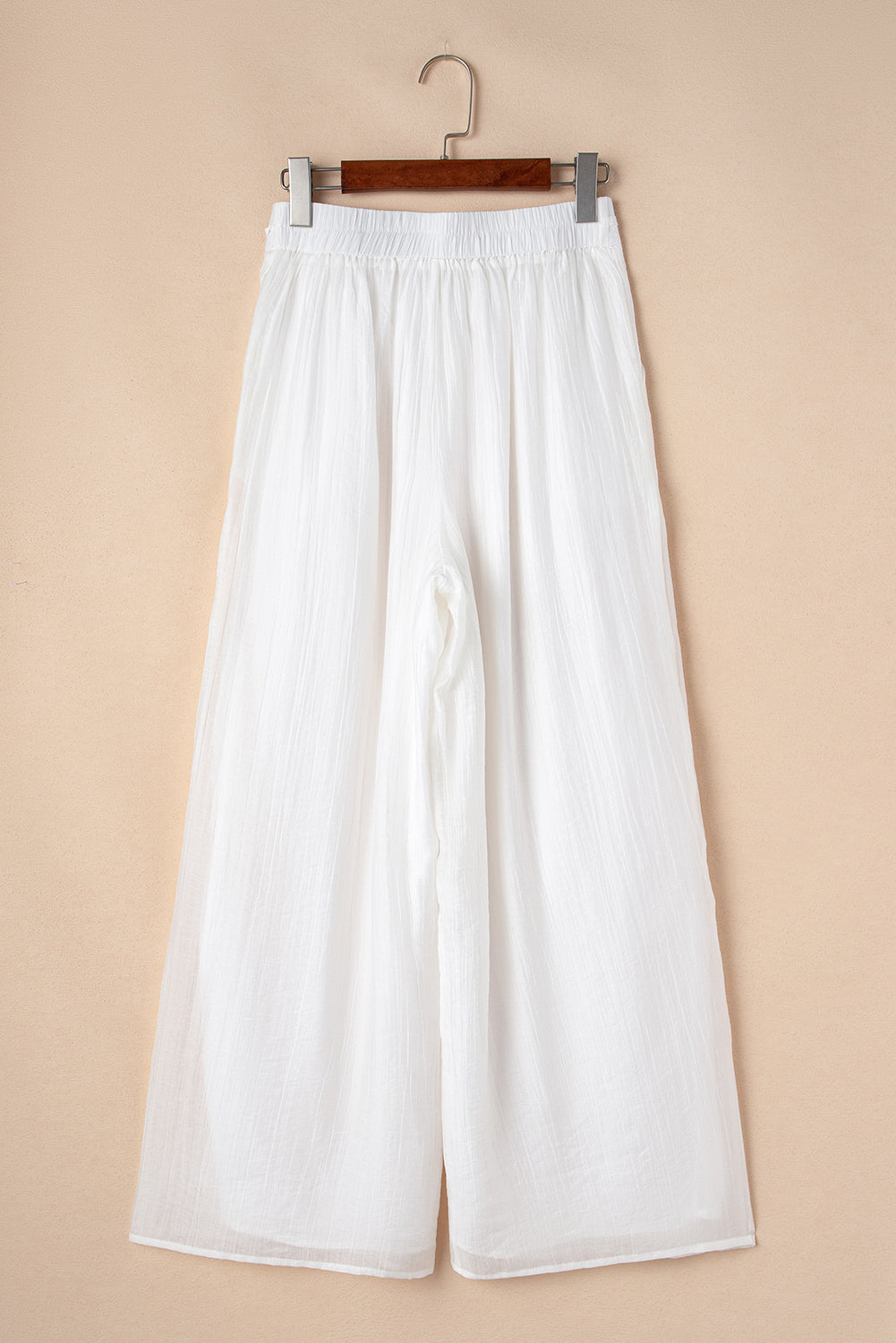 Get ready for some serious comfort in these super soft and flowy wide leg pants! The unique fabric adds a special touch, while the elastic back and front panel around the waist keep things comfy. The pleated details and wide leg cut create a sleek and stylish silhouette. Pair these casual pants with any top for a perfect spring and summer look.