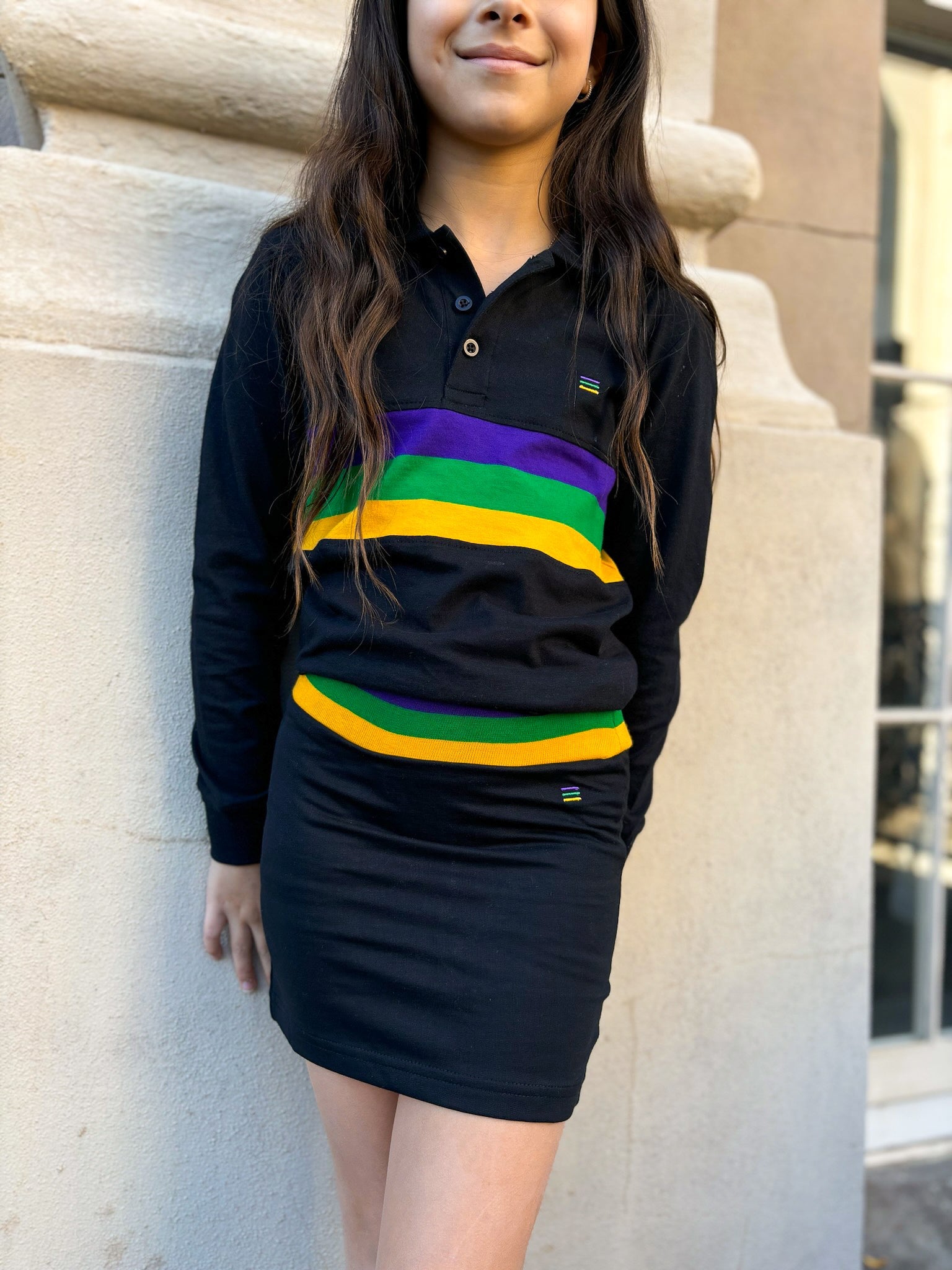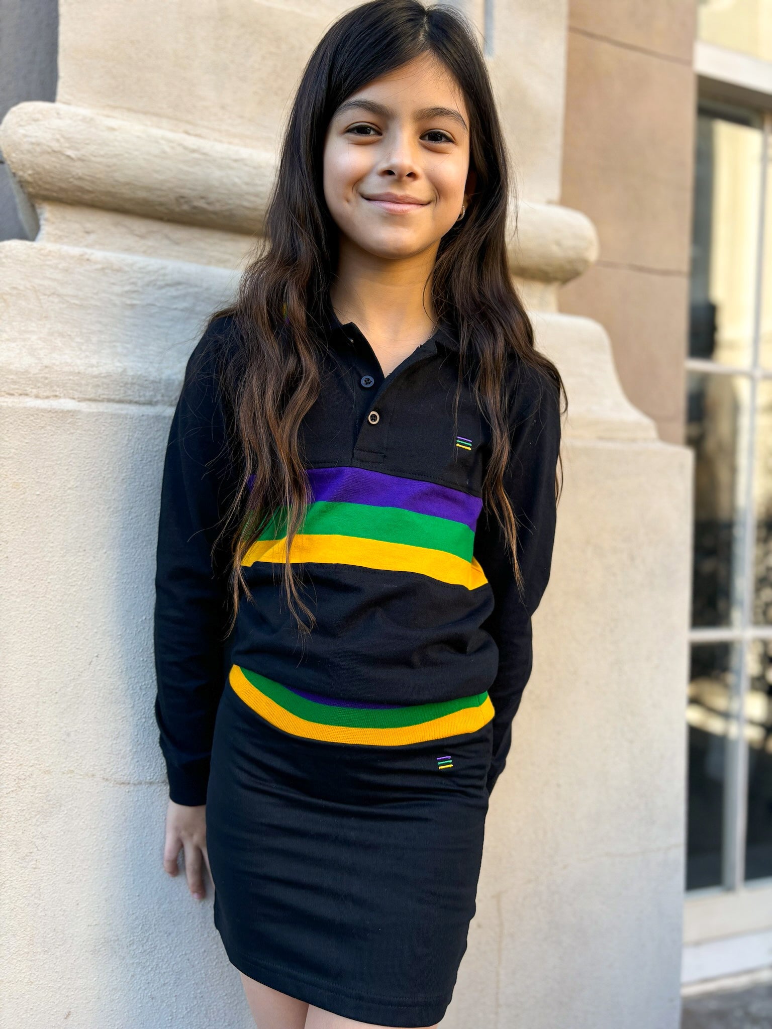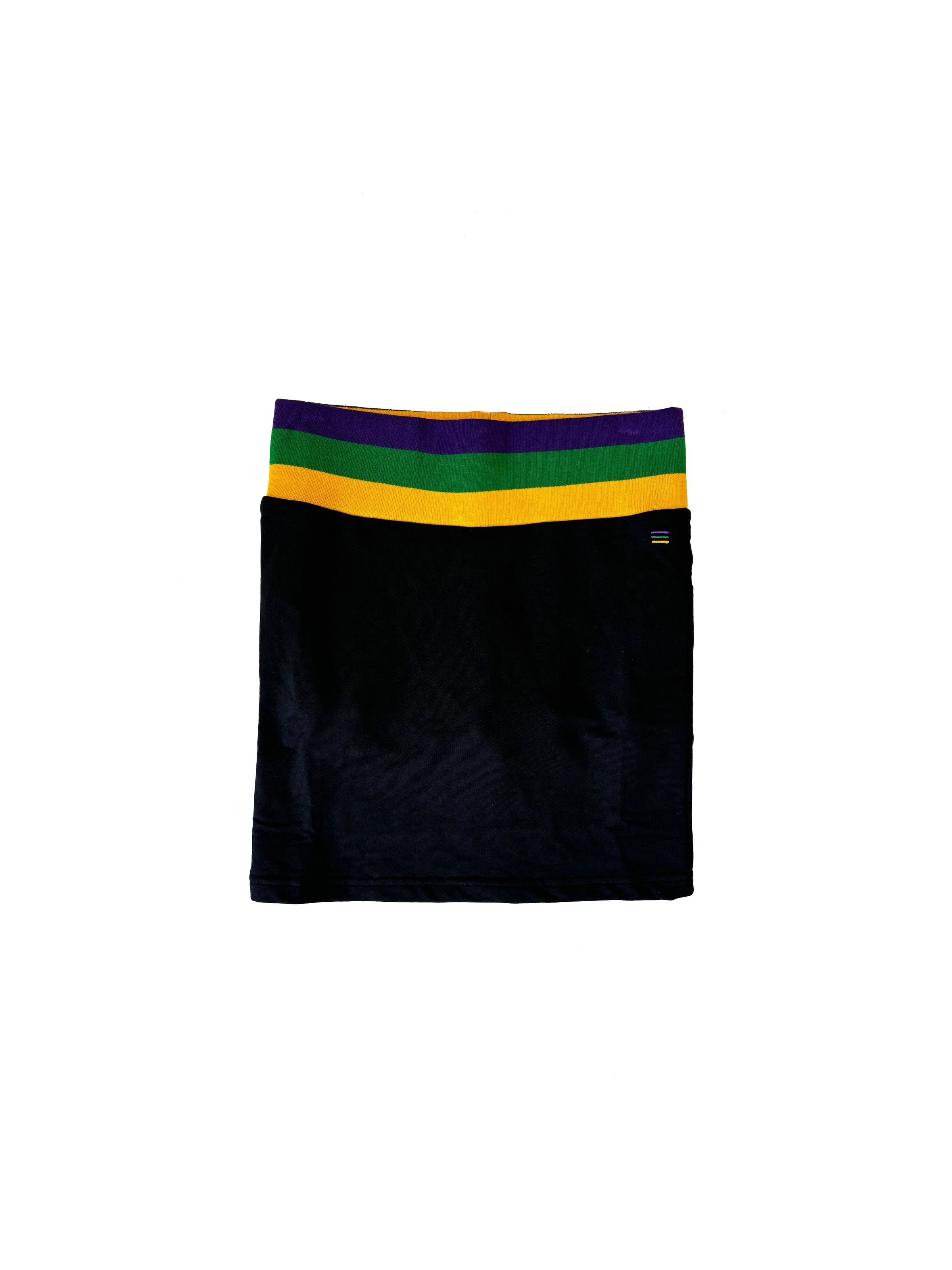 Party in style with our Junior Straight Cut Skort in Black! Perfect for Mardi Gras, this skort features pockets and a colorful purple, green, and gold waistband. Let loose and show off your playful side with this fun and functional skort.