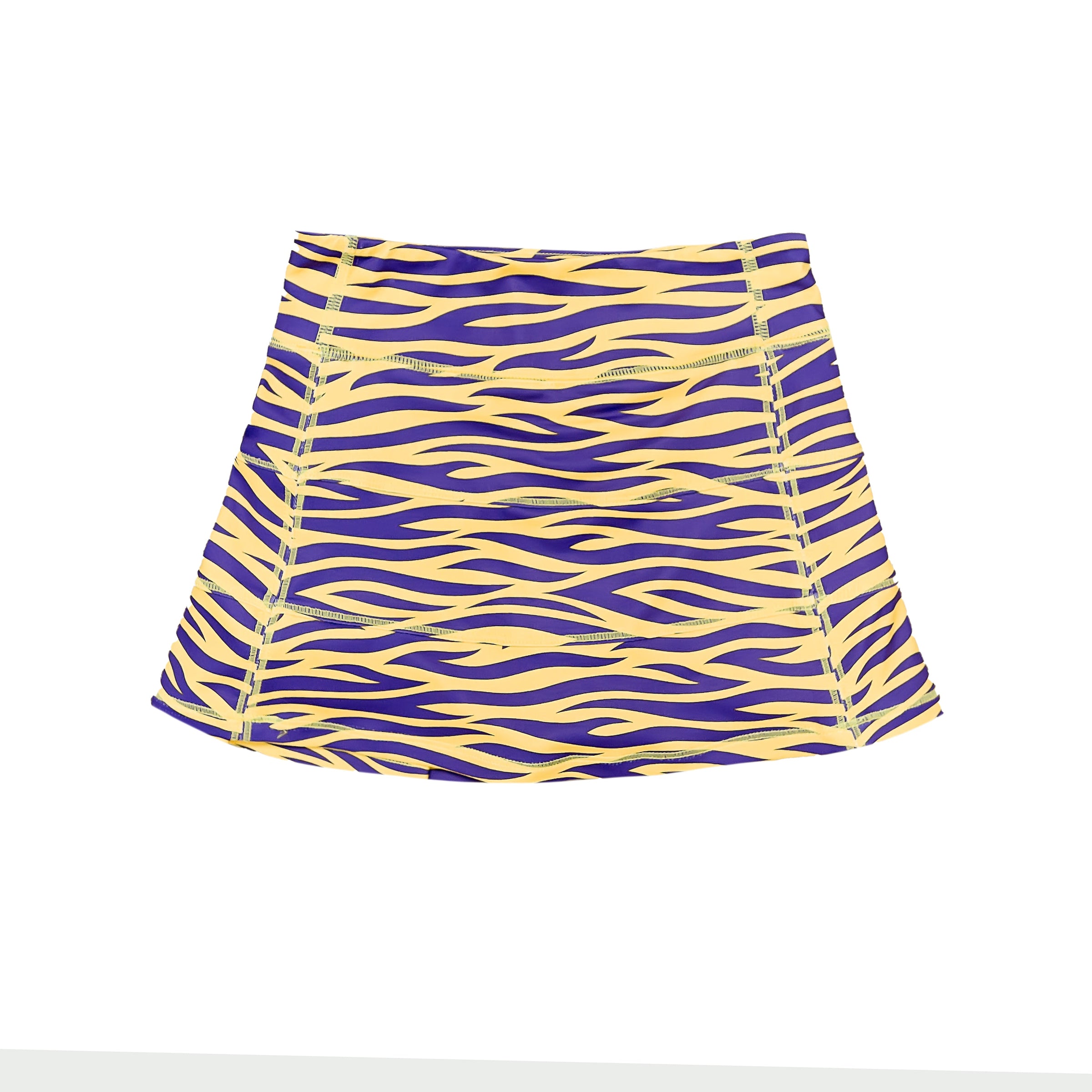 Your little one can hit the court in style with our Tiger Striped Tennis Skort! Made with a fierce tiger stripe design, this skort not only looks great, but also provides excellent breathability and ease of movement for maximum performance!