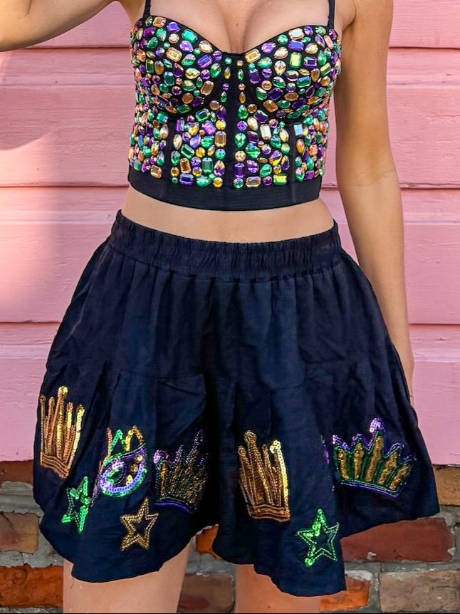 Frill Zip Front Puff Sleeve Top and Skort Set