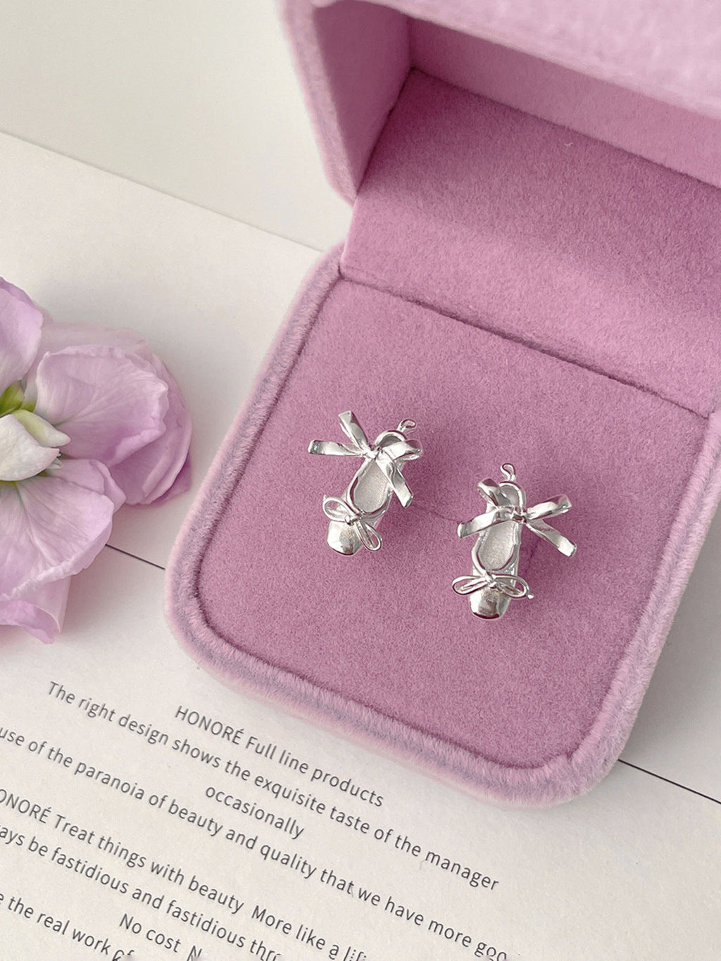 925 Silver Needle Ballet Shoes Stud Earrings Women's Exquisite Sweet Ribbon Bow