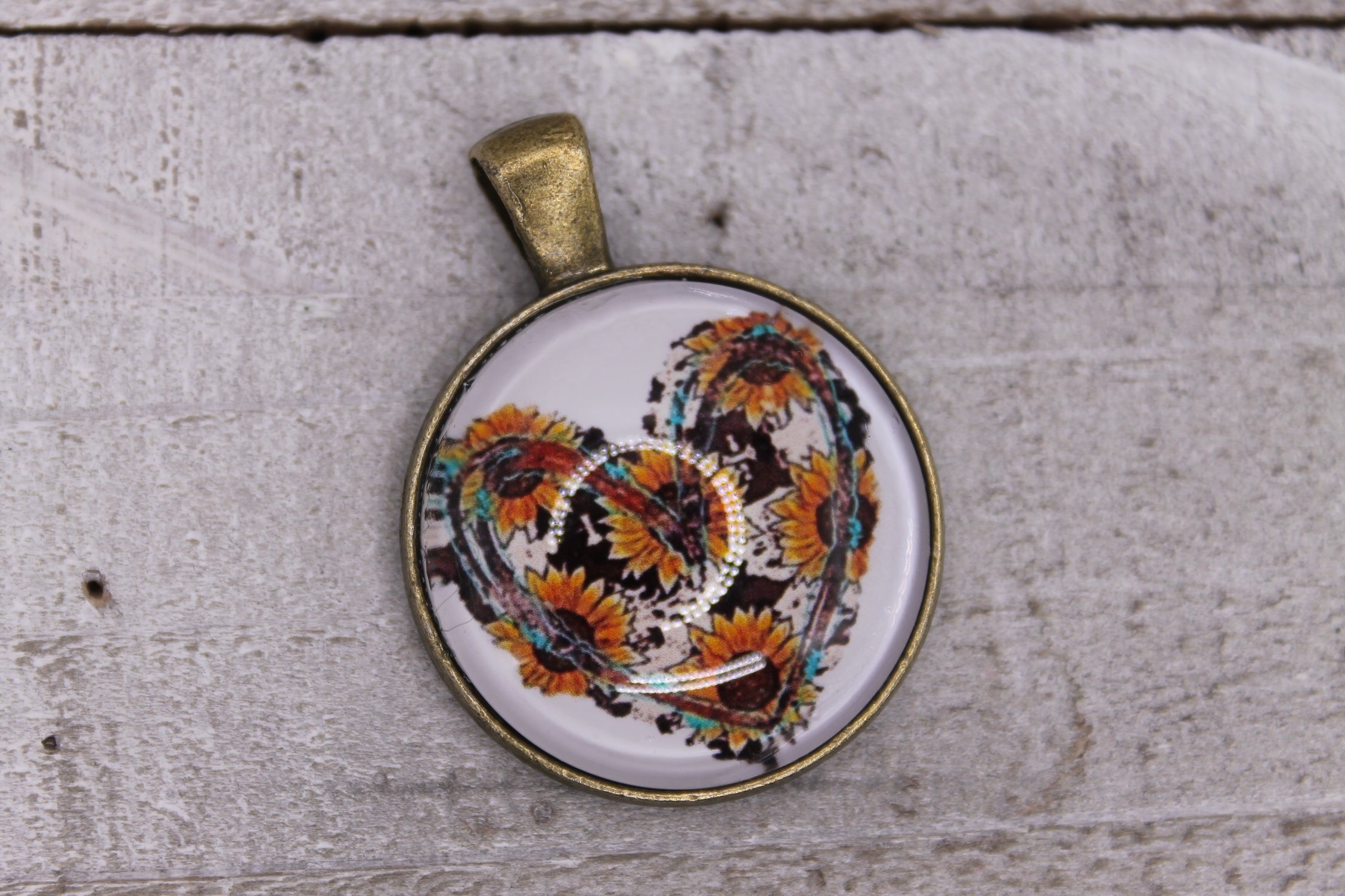 Cow Heart with Sunflowers • 25mm Pendant