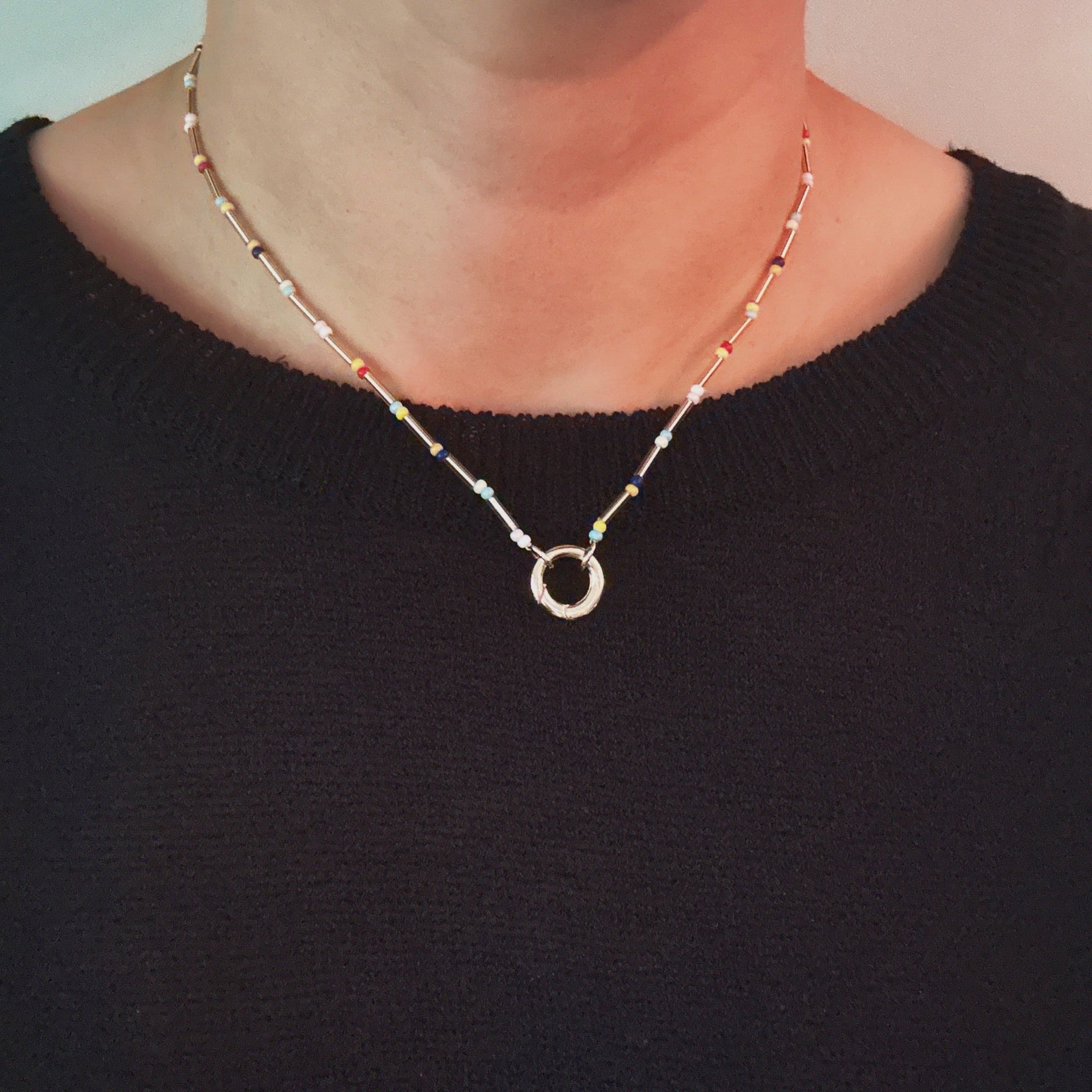 Dainty Color Bead Front Lock Necklace
