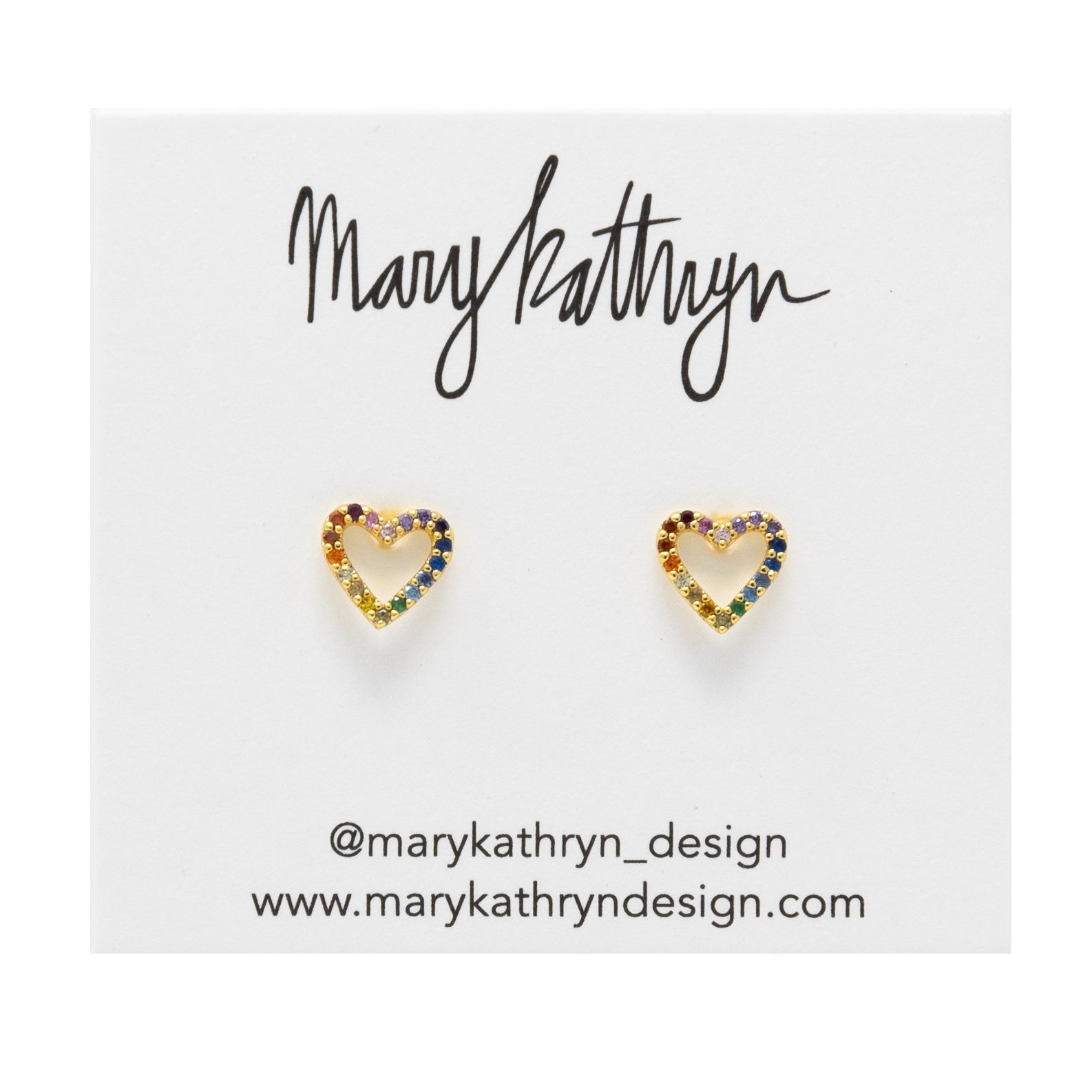 Add a pop of color to your outfit with our Rainbow Heart CZ Studs! These studs feature a vibrant rainbow heart design that will surely make a statement. Stand out from the crowd and show off your playful side with these fun and quirky studs. Perfect for any occasion, these studs will bring a smile to your face (and others')!