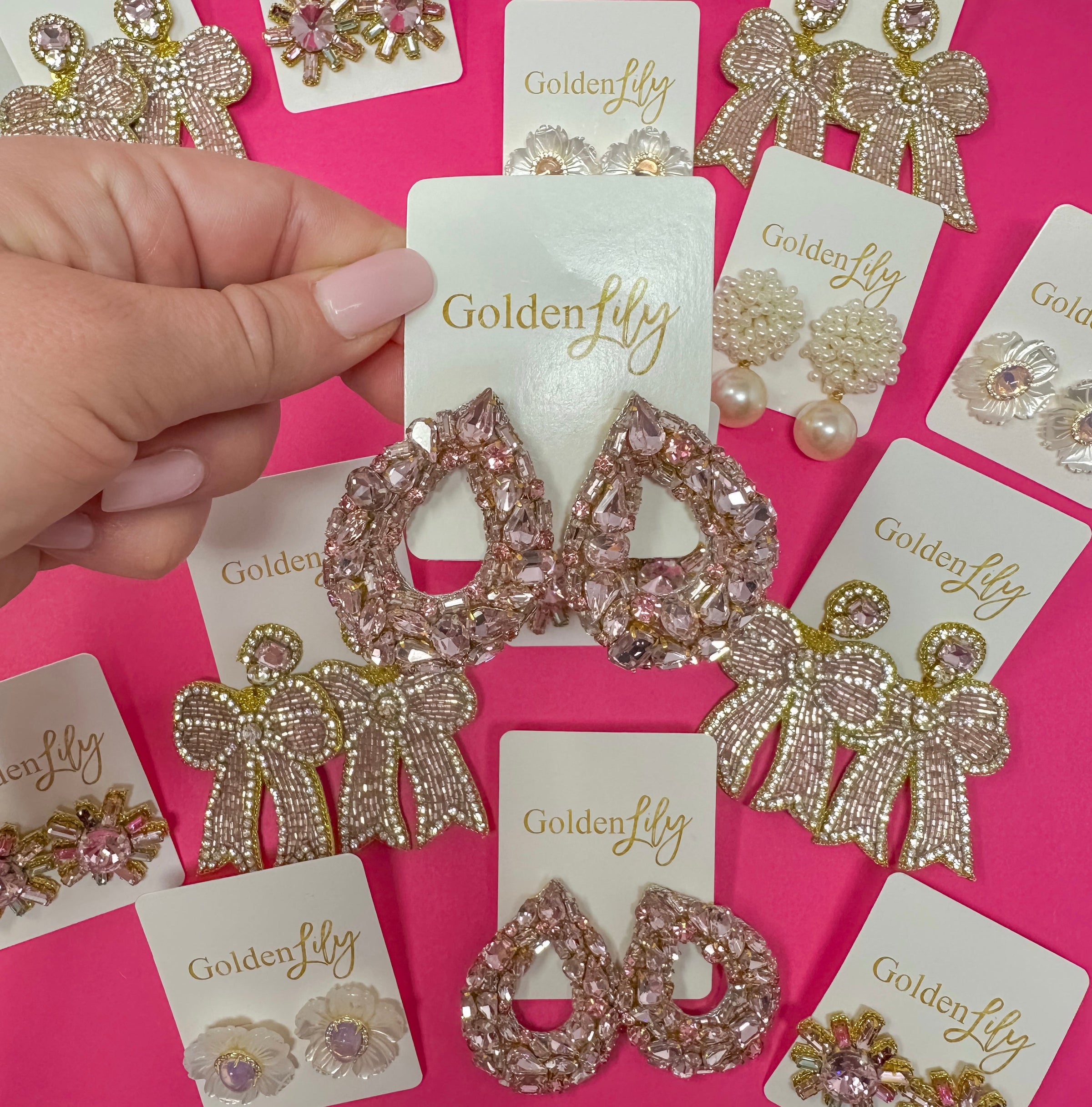 These rhinestone oval earrings are perfect for a fancy night out or event. Pair with a top or dress to finish out your look.