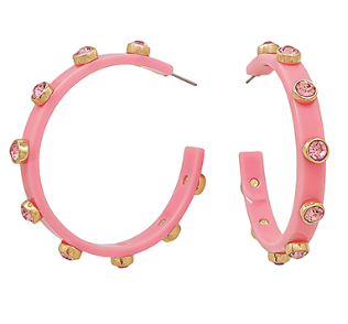 Rhinestone Hoop Earrings - Pink