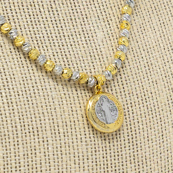 Introducing our Two Toned Saint Benedict Necklace! With its unique design and two-tone color, you'll stand out from the crowd. Embrace the protection and blessings of Saint Benedict while looking stylish and trendy. Perfect for everyday wear or a special occasion. Get yours now!