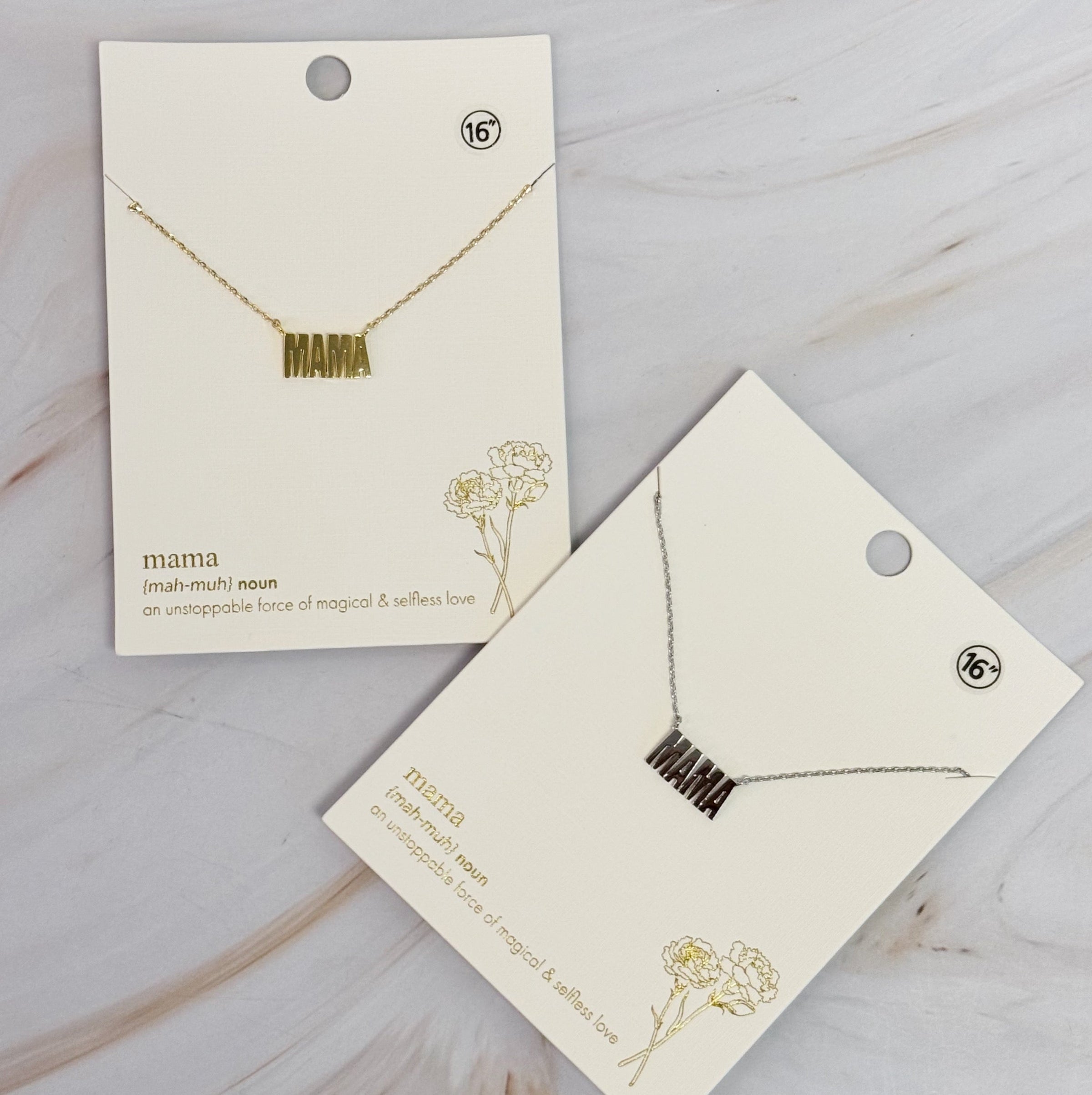 Simply Mama Pendant Necklace adds a touch of elegance to any outfit. The chic and simple mama pendant hangs on a dainty chain, making it the perfect accessory for any occasion. Show off your love for motherhood with this beautiful necklace.