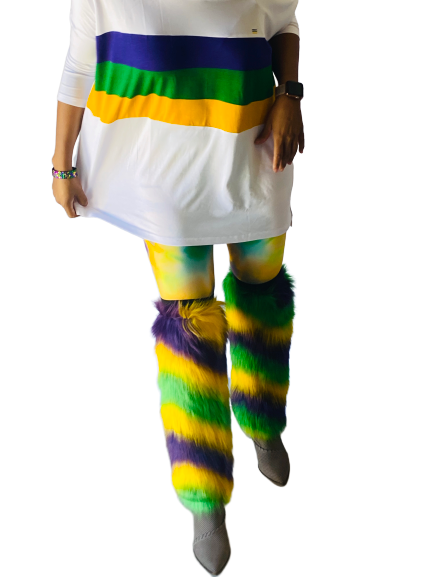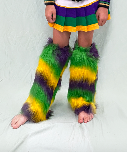 We have you covered- stay warm from your head to your toes! These multi striped fun and fuzzy leg warmers are the most coveted Mardi Gras accessory and we have them for kids and adults. Match your littles and rock the warmest and cutest accessory while you catch all the throws this parade season! Laissez les bon temps rouler.
