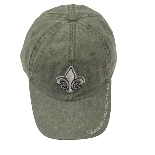 We love these caps with an embroidered Fleur de Lis on the front plus Laissez Les Bons Temps Rouler embroidered on the brim of the cap. Available in black or green.