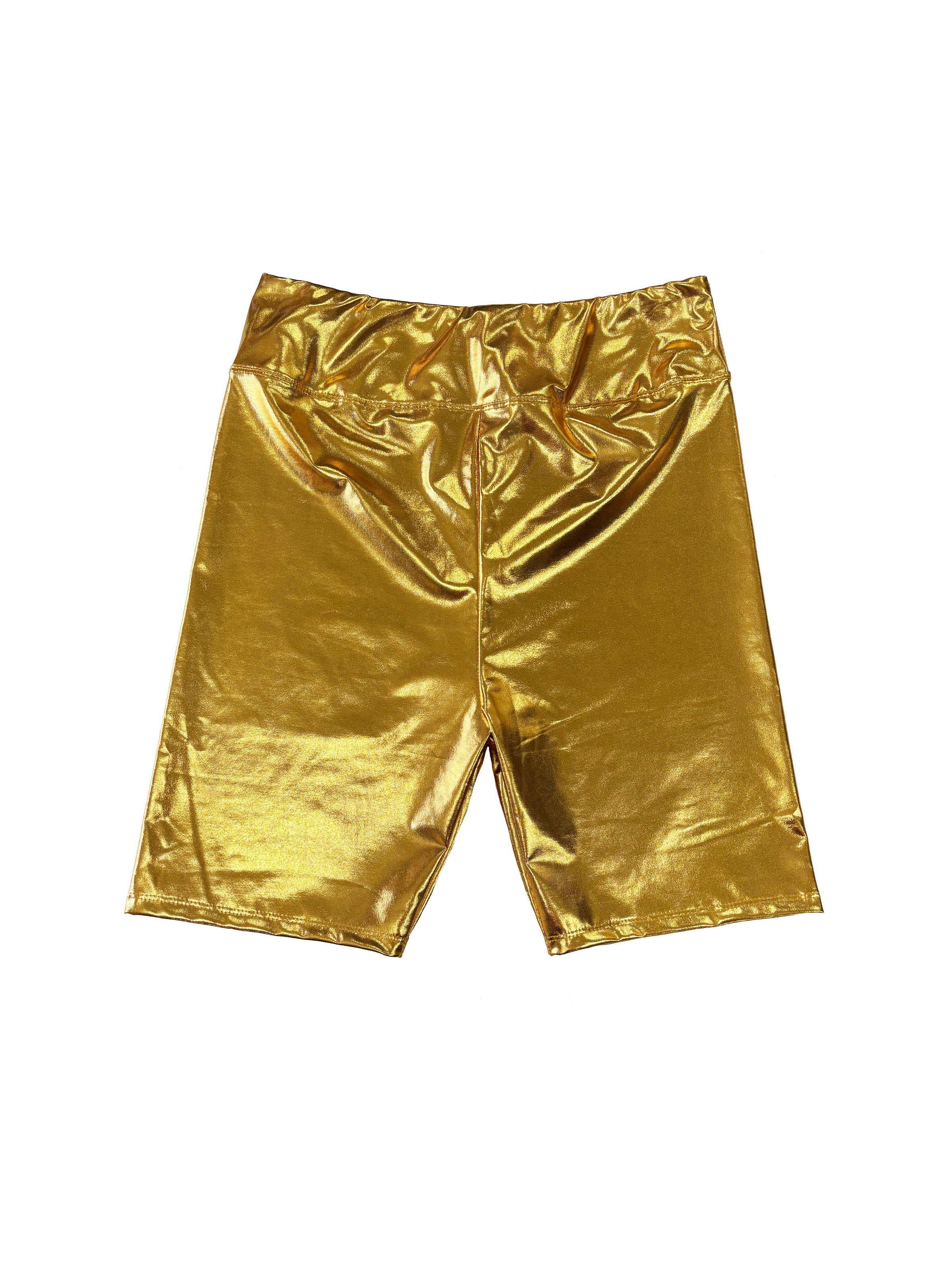 Add some sparkle to your wardrobe with our Adult Metallic Biker Shorts in Gold! These trendy shorts are perfect for adding a unique touch to any outfit. Pair them with your favorite oversized Mardi Gras sweater for a fun and playful look, or with your go-to game day look to cheer on your favorite team.
