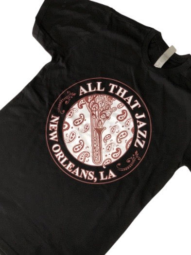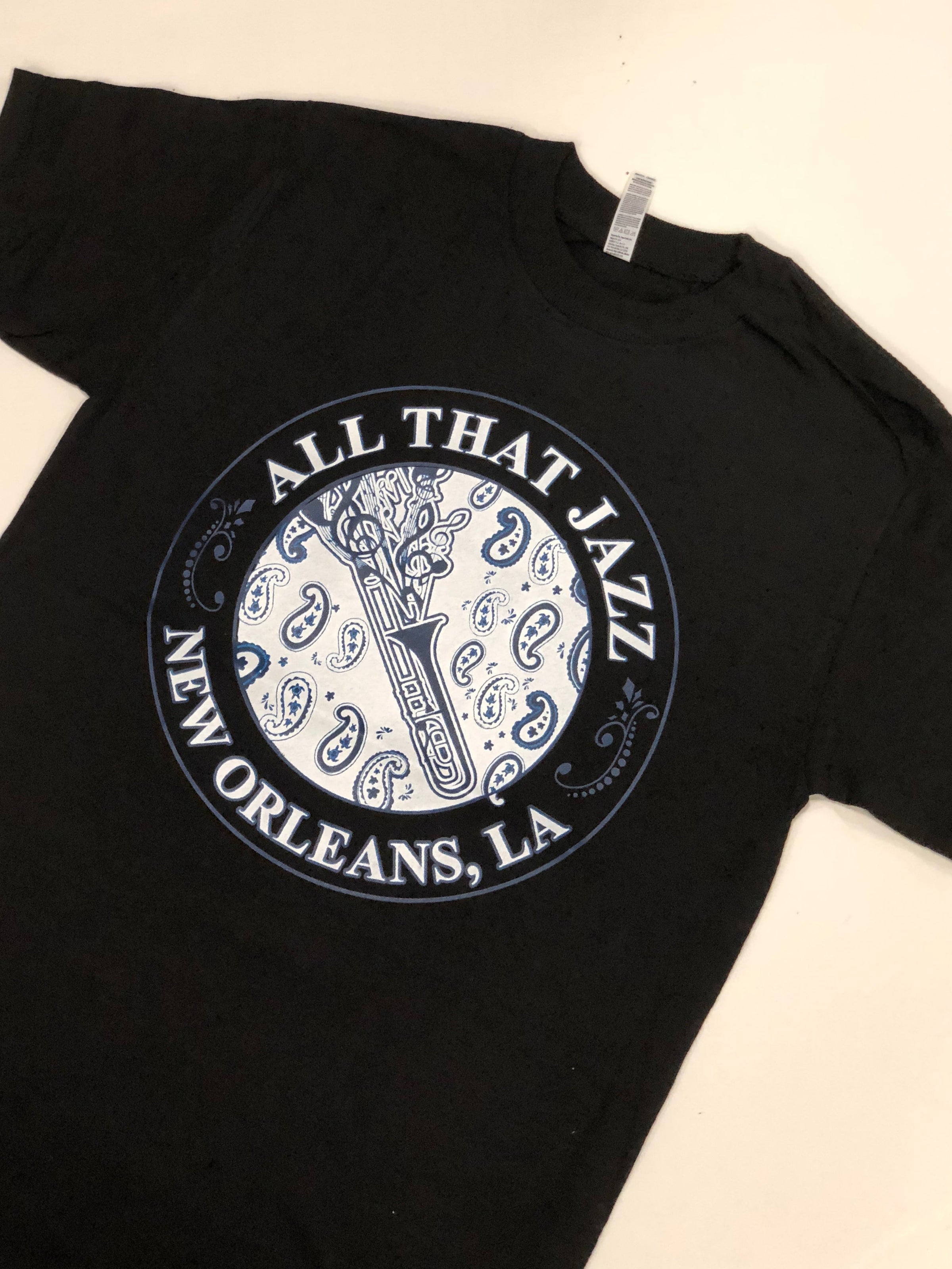 New Orleans is a city of music! This T-shirt features a trombone in the center and reads "All That Jazz"