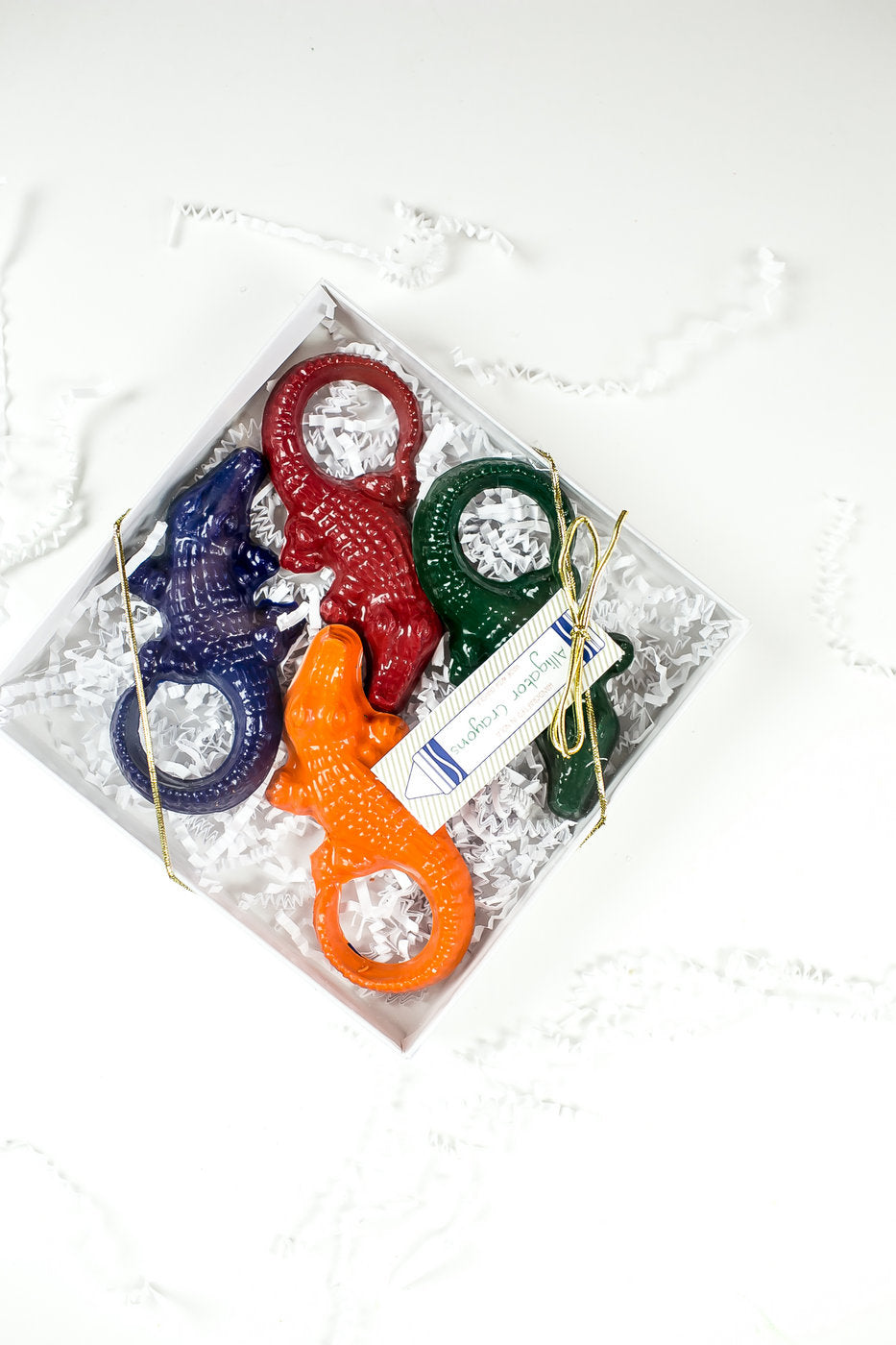 Our set of 4 alligator crayons are an instant hit in party bags and make great NOLA birthday party favors! Or pair them with a coloring book and gift them to the birthday kid who loves alligators!