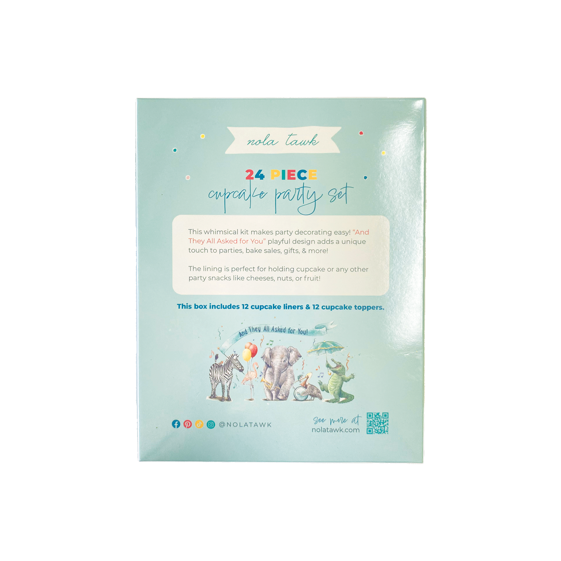 This whimsical kit makes cupcake decorating easy! The “And They All Asked for You” playful design adds a unique touch to parties, bake sales, gifts, & more.