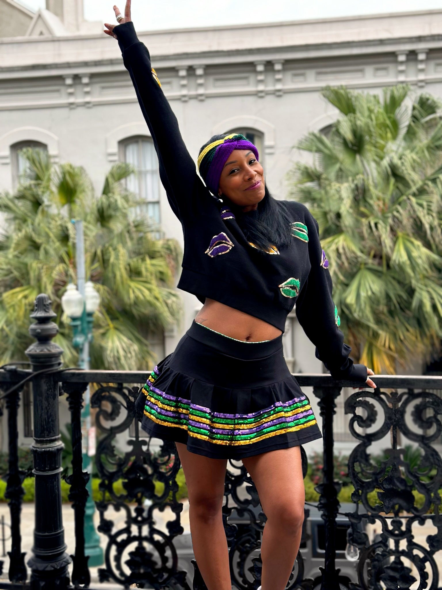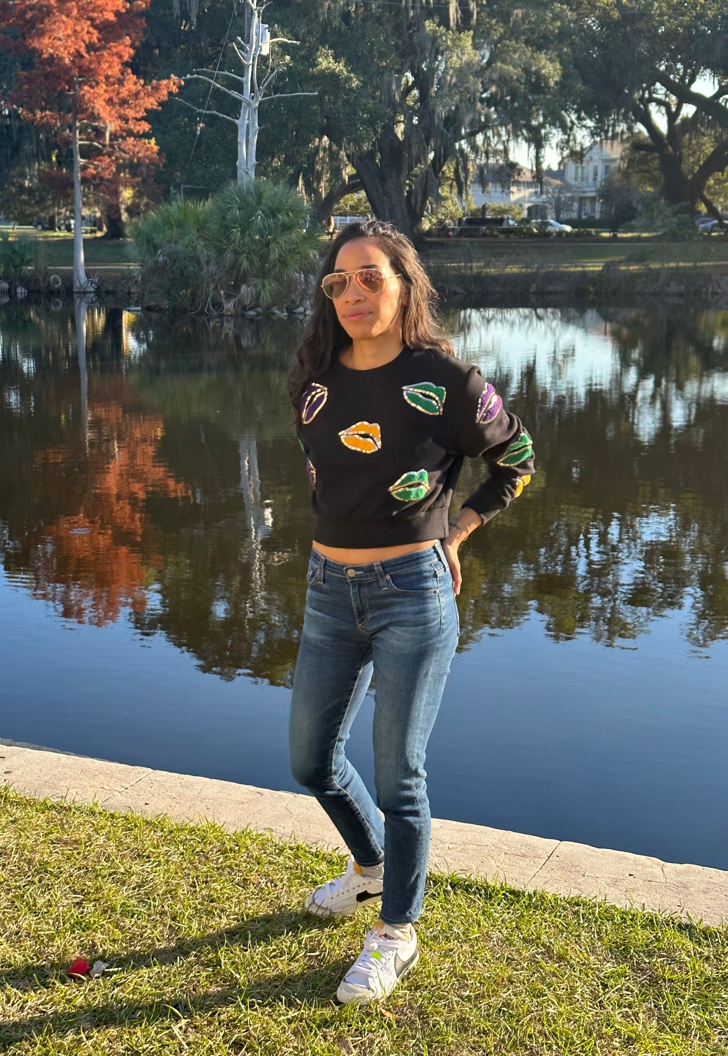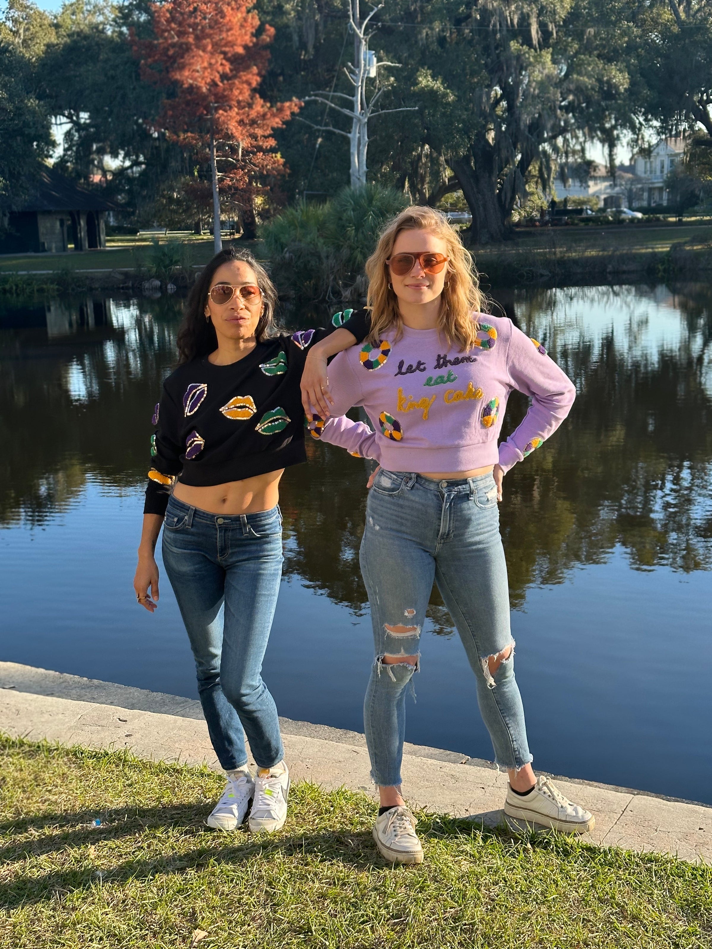 Stay wild and free in this 'ASP All Over Lips Adult Crop Pullover'! It's a perfect way to add some fun, extra kicks to your wardrobe. With a loud and proud Mardi Gras design and chain stitched lips appliqué, this crop pullover will ensure you're the life of the party! Who said being grown up has to be boring?