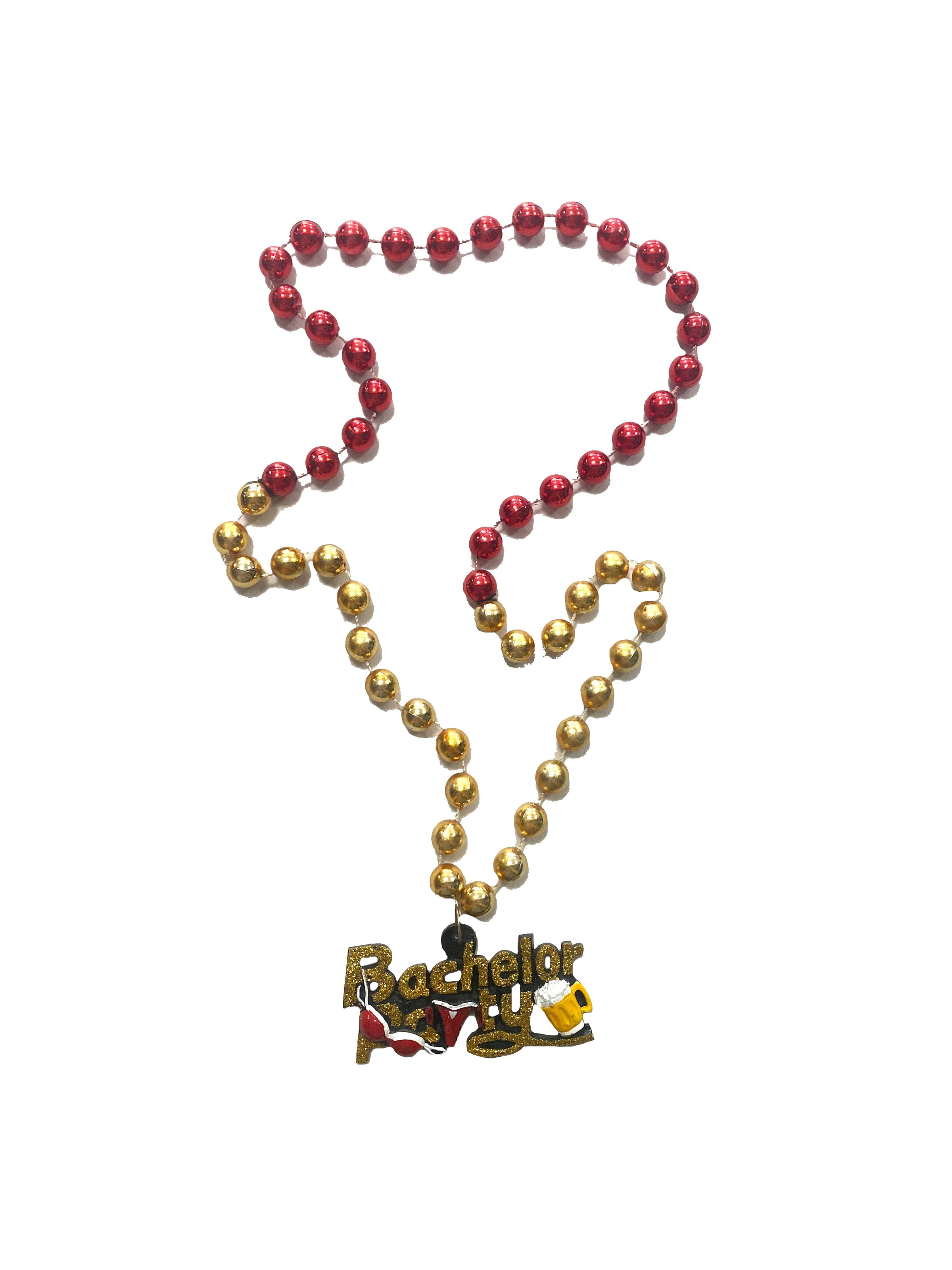 You'll be the belle of the ball with this Bachelorette Party Medallion on Red and Gold Specialty Bead! This one-of-a-kind necklace features a stylish medallion, beer mug, and a feminine bra charm - all you need to make your bachelorette night extra special! Perfect for making sure that the last fling before the ring is a real bling.