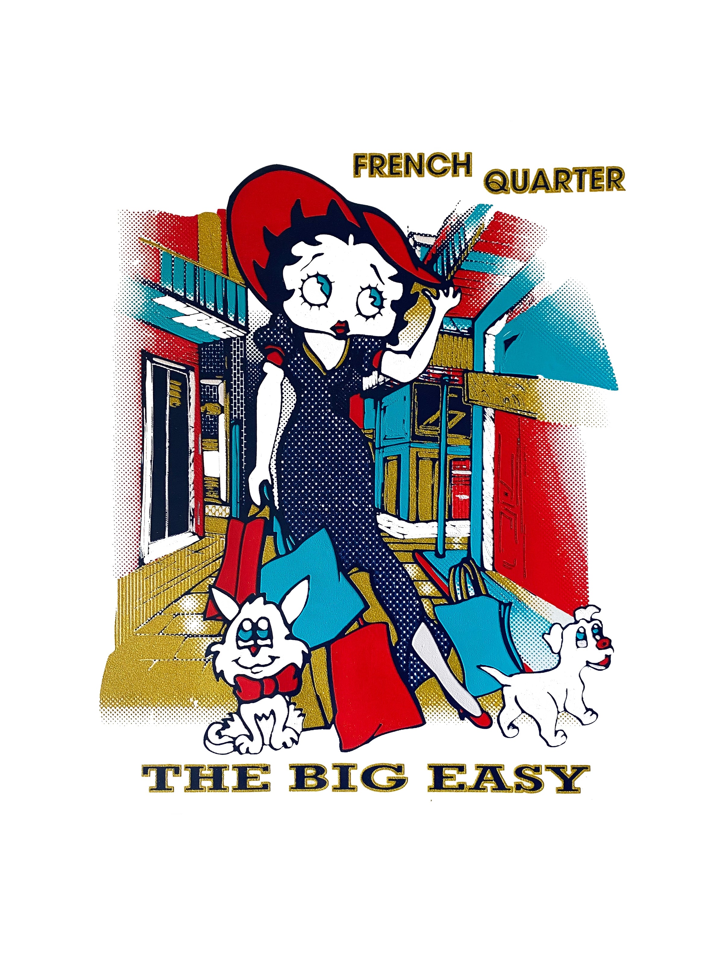 Get ready to strut your stuff in the Betty Boop French Quarter Fitted V-Neck T-Shirt! Featuring the beloved Betty Boop living it up in The Big Easy, this tee brings the fun and playfulness of the French Quarter straight to your wardrobe. Perfect for a day out in the city or a night of dancing, this shirt is sure to turn heads and make you feel like a star.