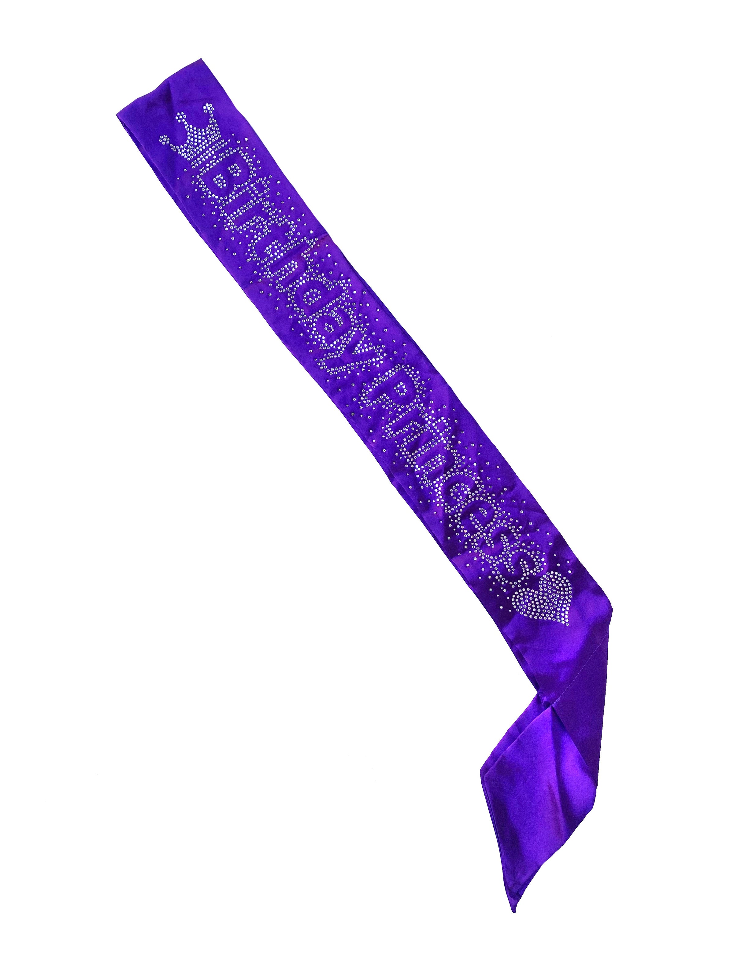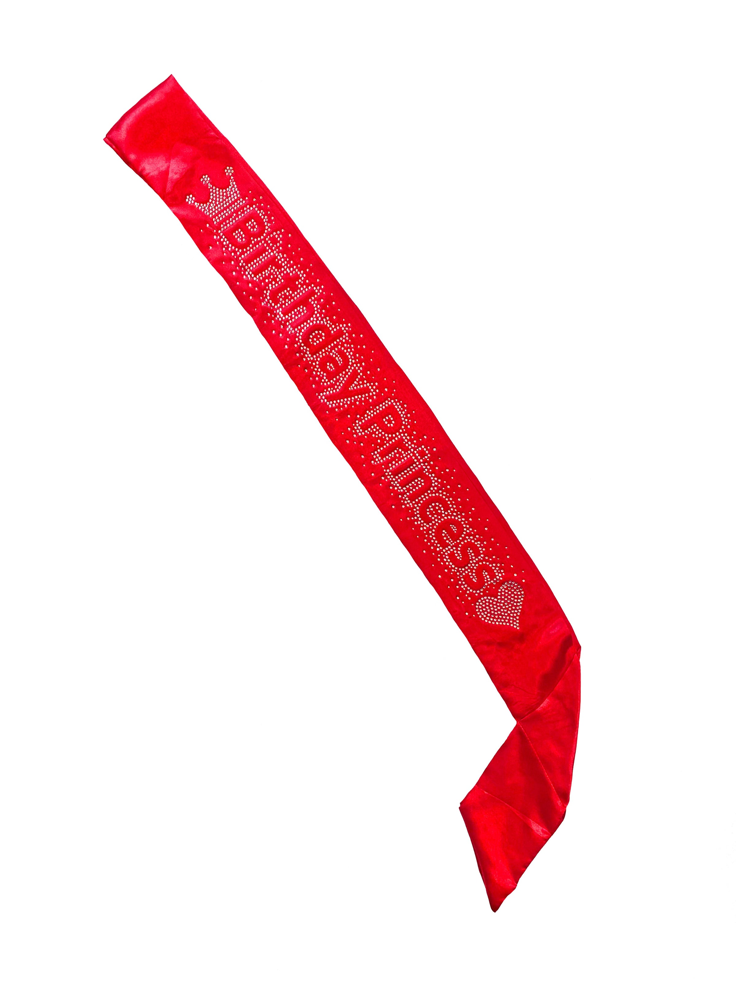 Crown yourself the Birthday Princess with this sparkling rhinestone sash! Featuring a cute crown and heart design, this sash will make you stand out and feel like royalty on your special day. Let everyone know it's your birthday with a touch of sass and style. Long live the Birthday Princess!