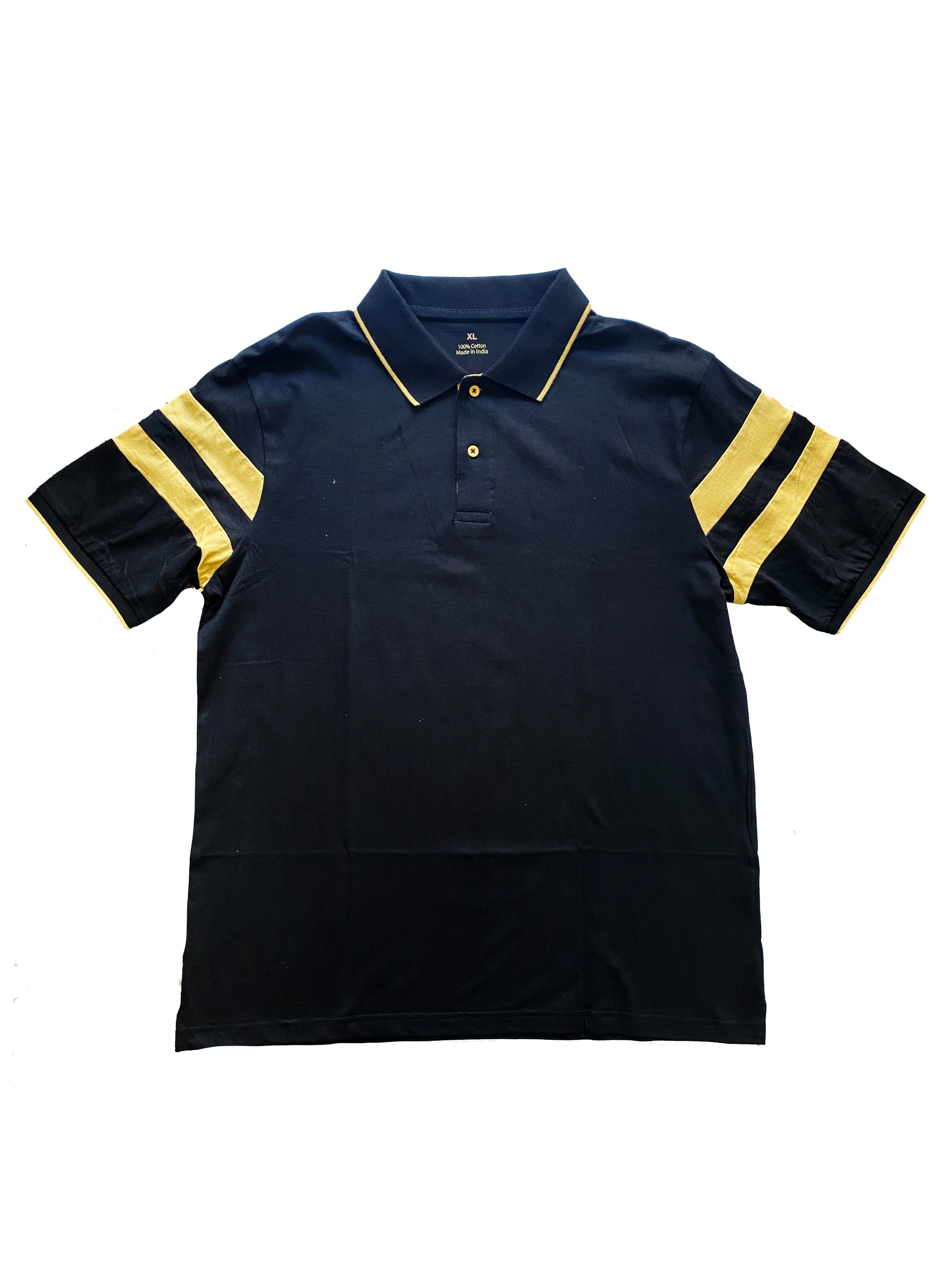 This Black and Gold Adult Short Sleeve Arm Stripe is the perfect way to show your team spirit. Represent your team on and off the field this football season in bold black with gold stripe accents along the sleeves and collar.