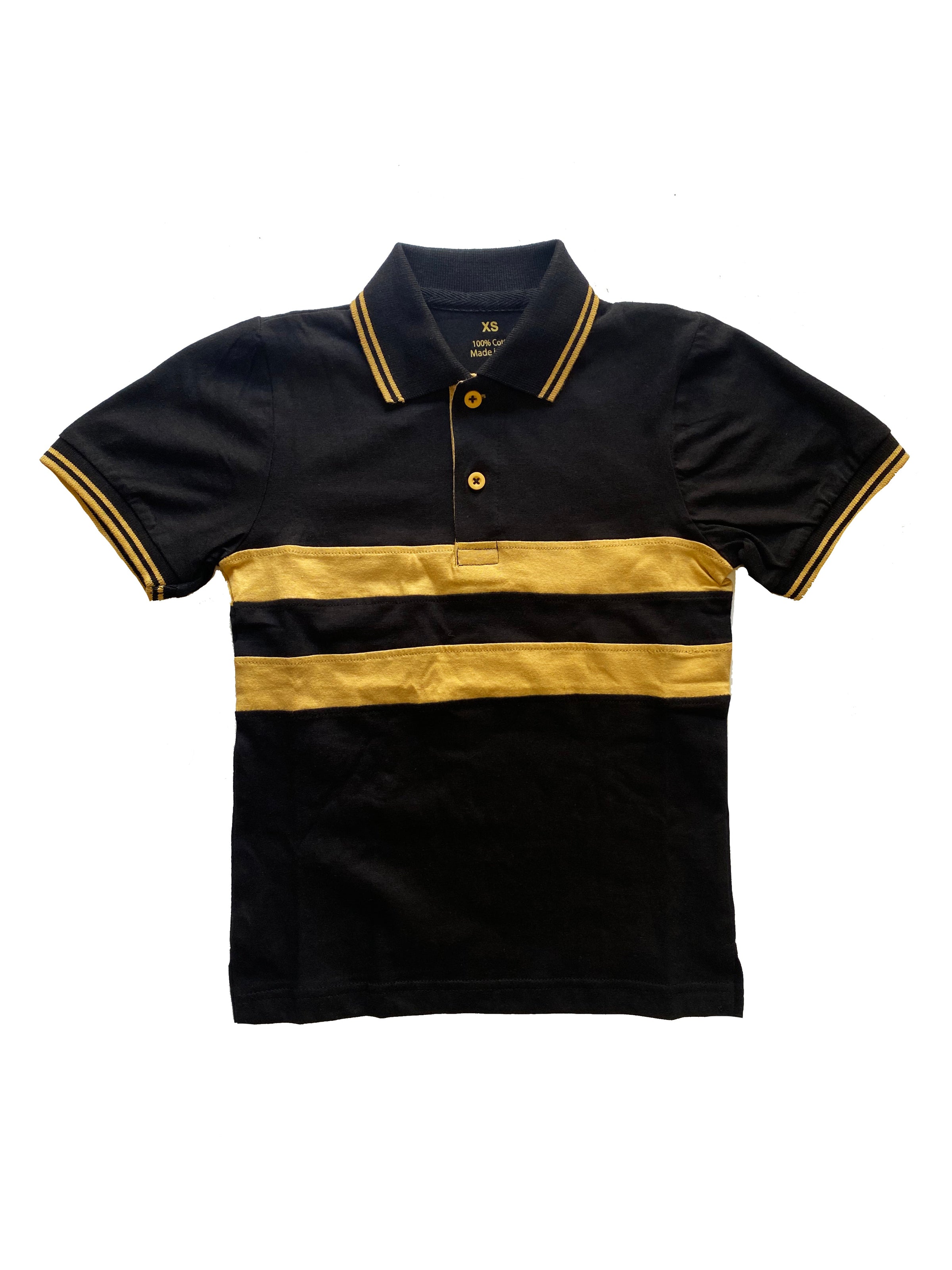 Make a statement with this classic Black and Gold Youth Short Sleeve Chest Stripe polo. Crafted with comfortable fabric and stylish chest stripes for a bold flair, this polo is perfect for celebrating football season in style. Its classic black-and-gold combination makes it a timeless and versatile piece.