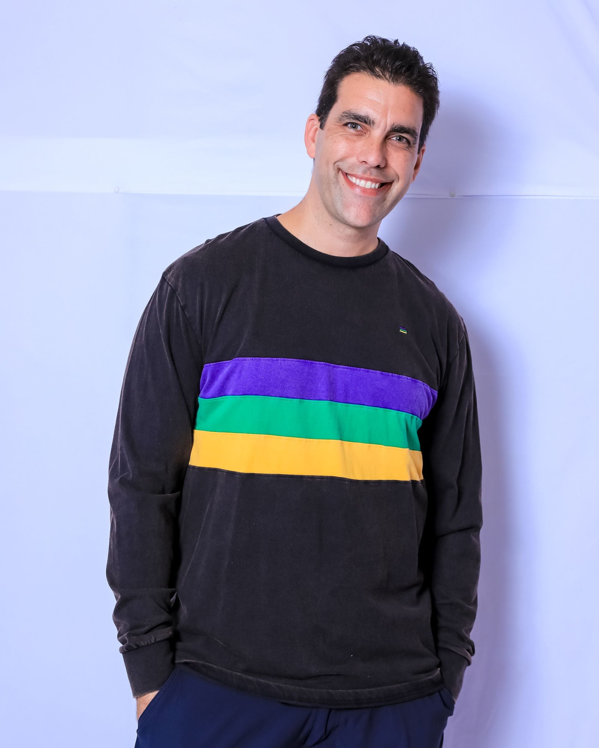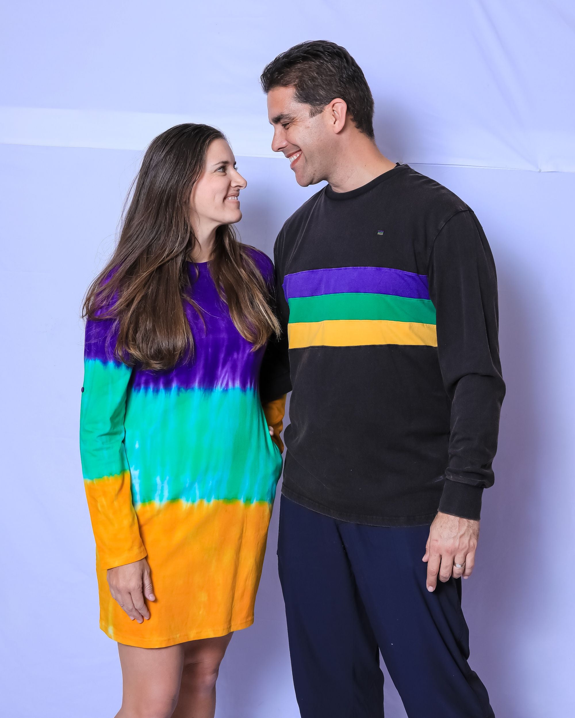 Celebrate Mardi Gras with this super soft and comfortable acid wash, black/brown long sleeved Mardi Gras shirt. This shirt features purple, green and gold solid stripes across the chest. You’ll love it so much you’ll want it in both colors!!