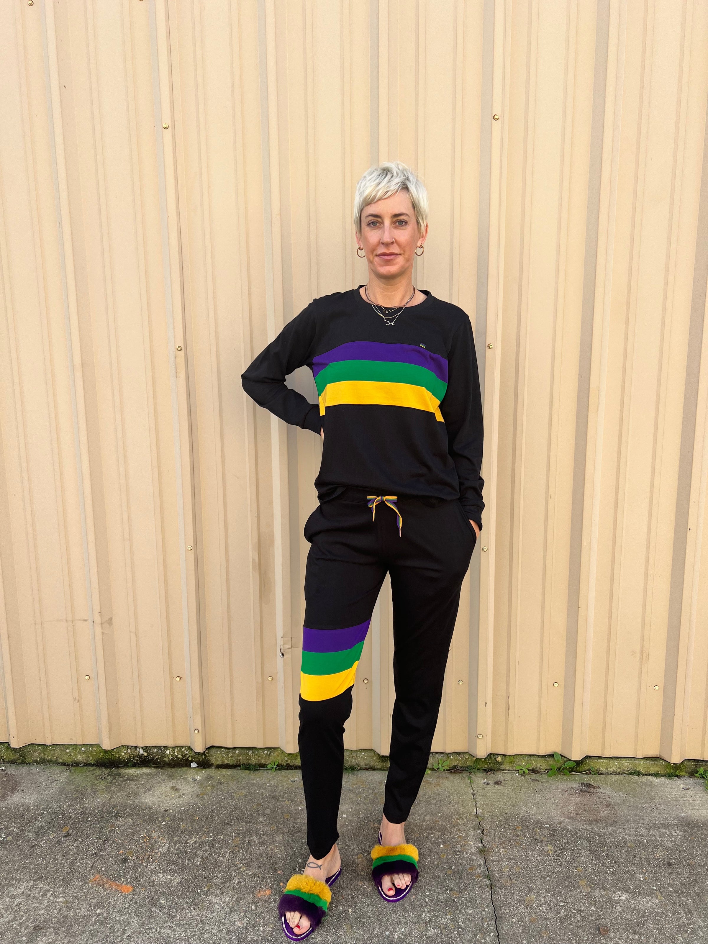 Go from your house straight to parading! We are obsessed with this super cool, fun, dream of a lounge/sleep pajama set! Unisex, 100% breathable cotton.