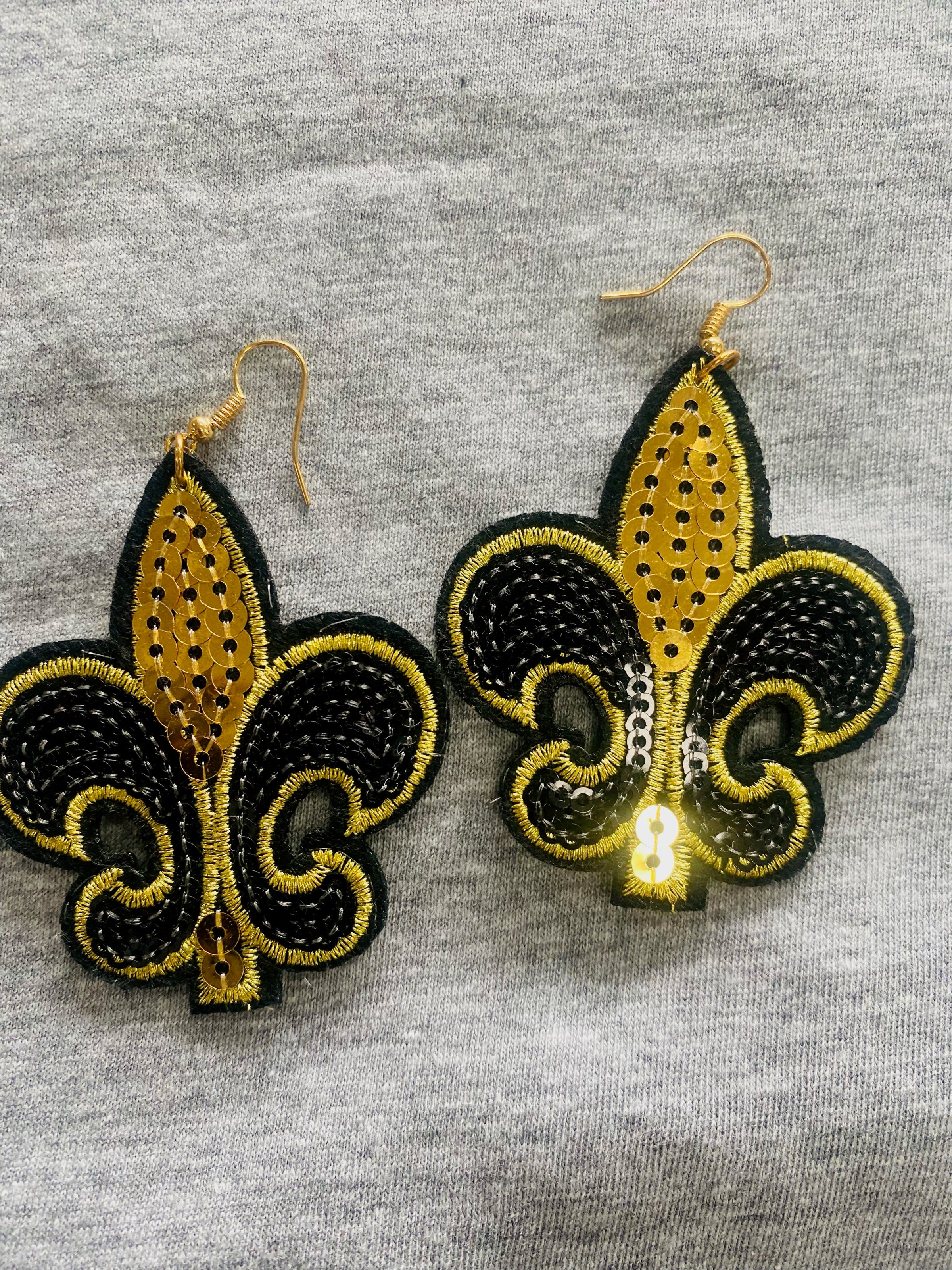 These stylish black and gold fleur de lis earrings are the perfect finishing touch for all your Mardi Gras and game day looks this season!