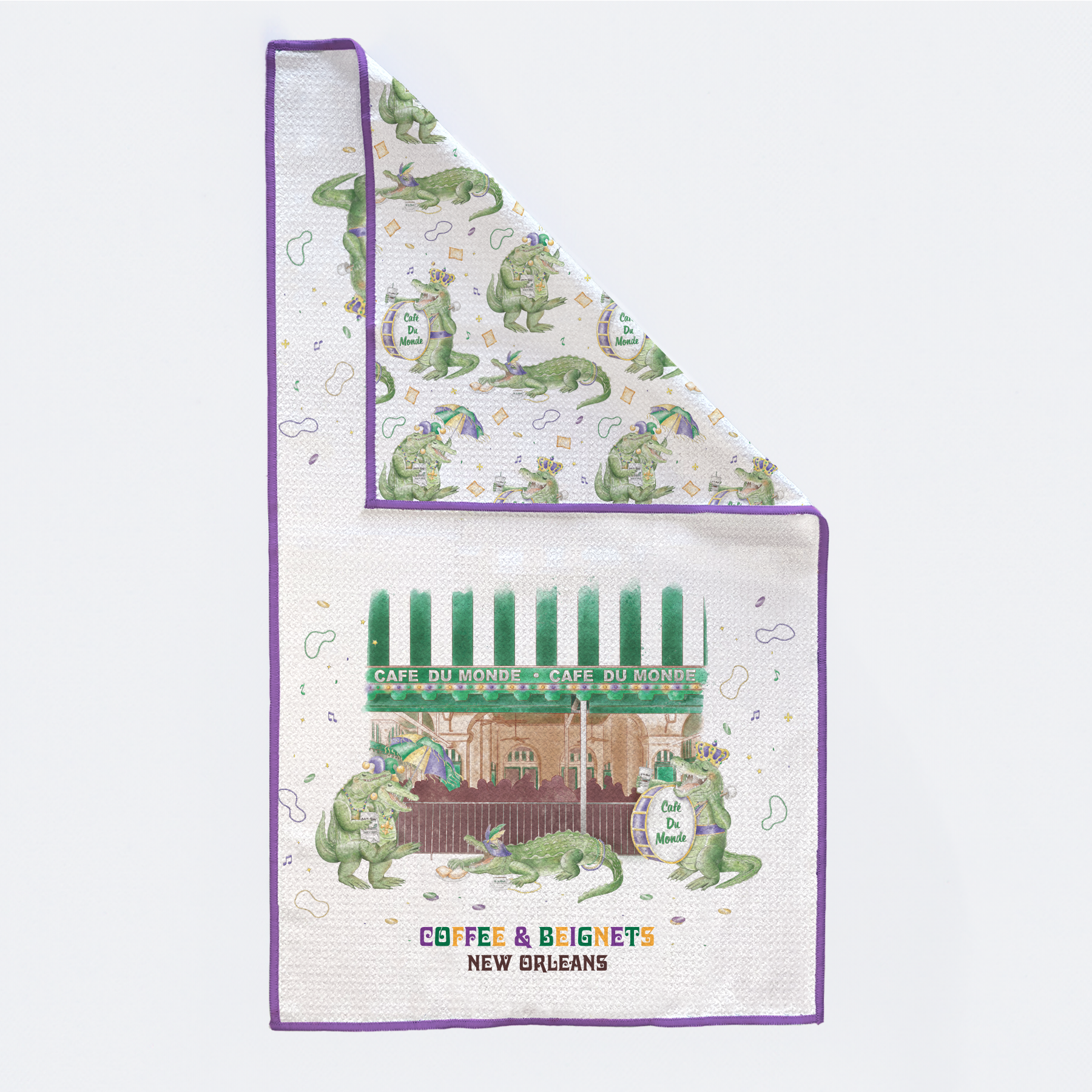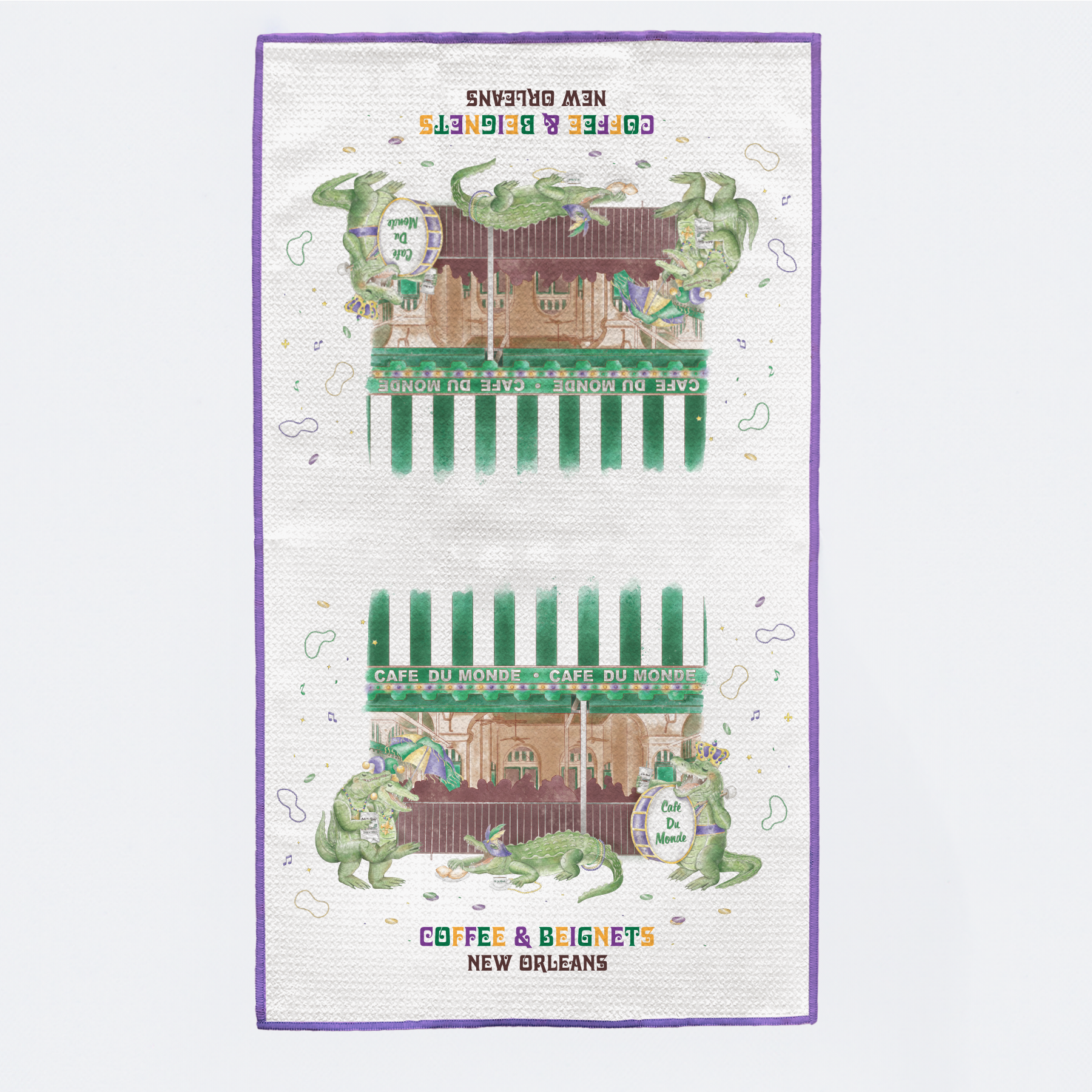 - Double-Sided Printing: Custom artwork on both sides, showcasing the vibrant spirit of New Orleans. The artwork on the kitchen towel is reversible, so it doesn’t matter which way you hang it!
