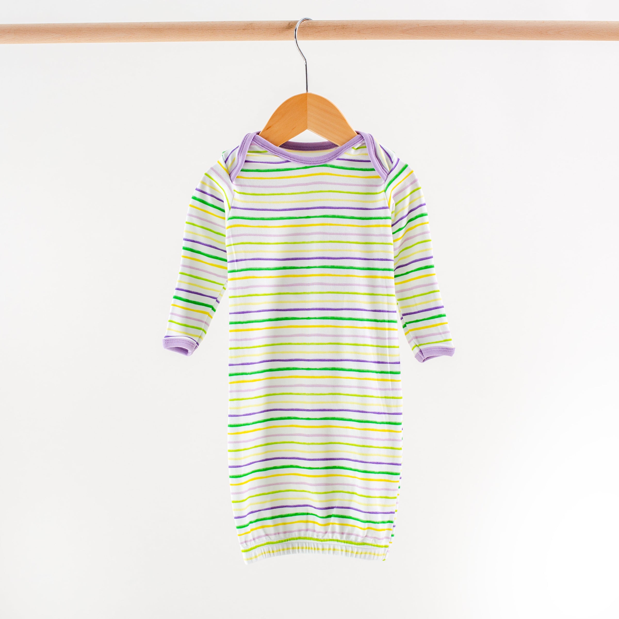 Celebrate bedtime in Mardi Gras style with our Carnival Time Organic Cotton Kids Pajamas! Featuring a festive stripe pattern in classic Mardi Gras colors—purple, green, and gold—these cozy, breathable pajamas bring the joy of the season to every night. Perfect for little ones who love the magic of parades, beads, and New Orleans flair, they’re designed for comfort and all-night rest. These ultra-soft, GOTS-certified organic cotton pajamas will keep your child snug and ready to parade into dreamland.
